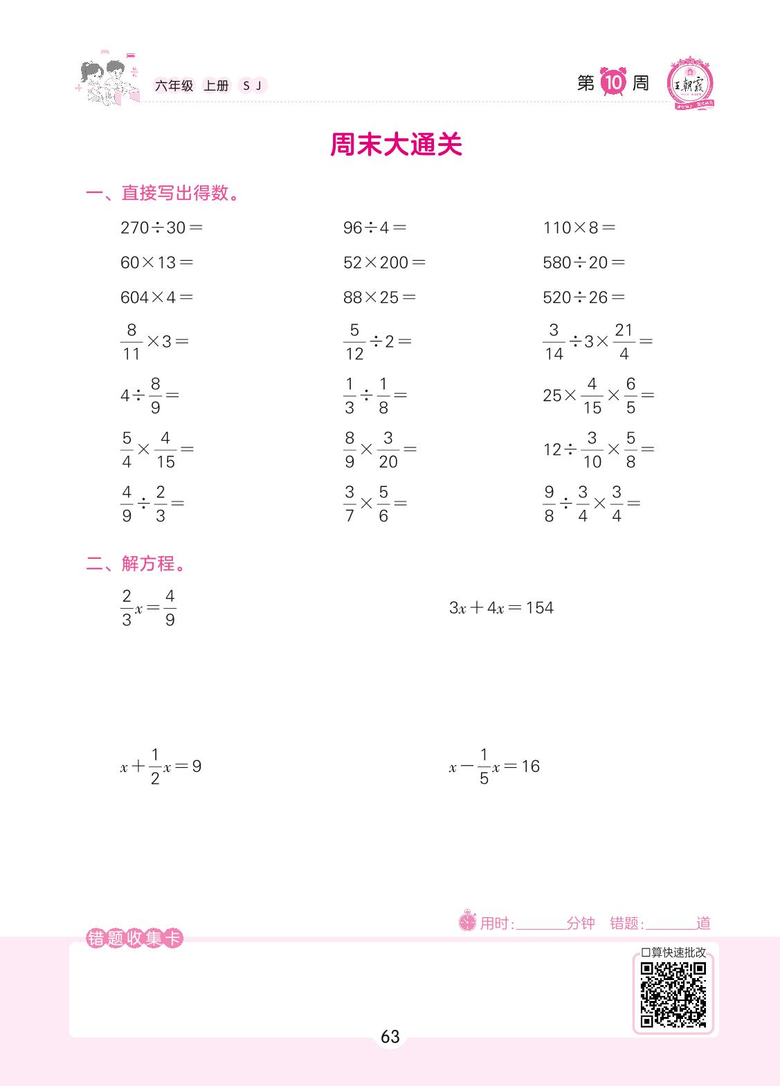 2022上册六年级数学苏教版 第10周 周末大通关