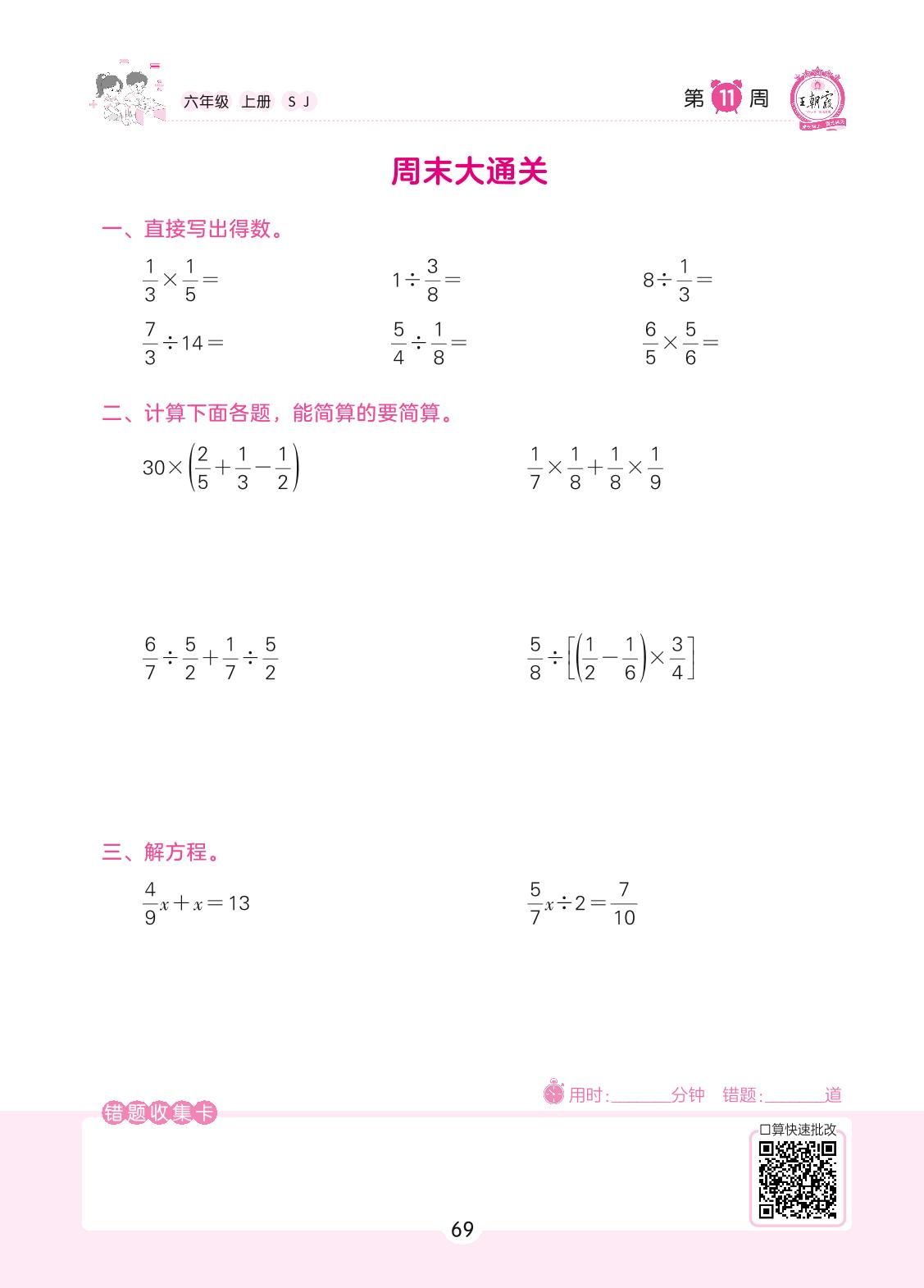 2022上册六年级数学苏教版 第11周 周末大通关