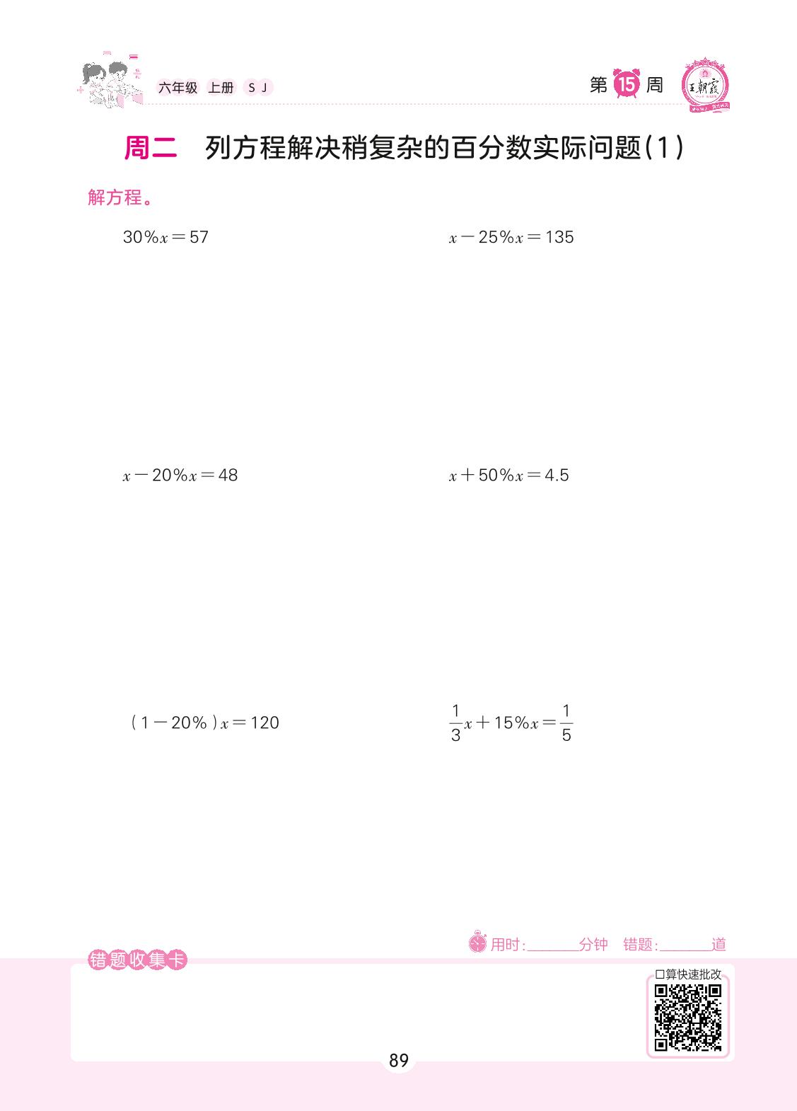 2022上册六年级数学苏教版 第15周 周二