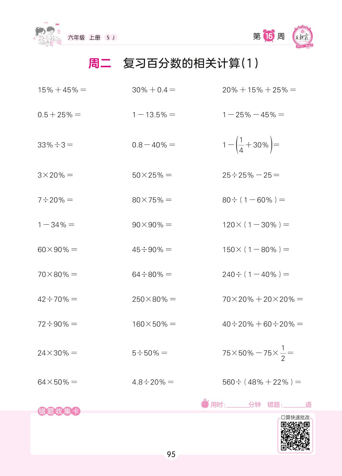 2022上册六年级数学苏教版 第16周 周二