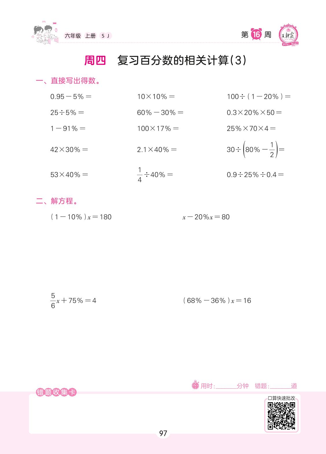 2022上册六年级数学苏教版 第16周 周四