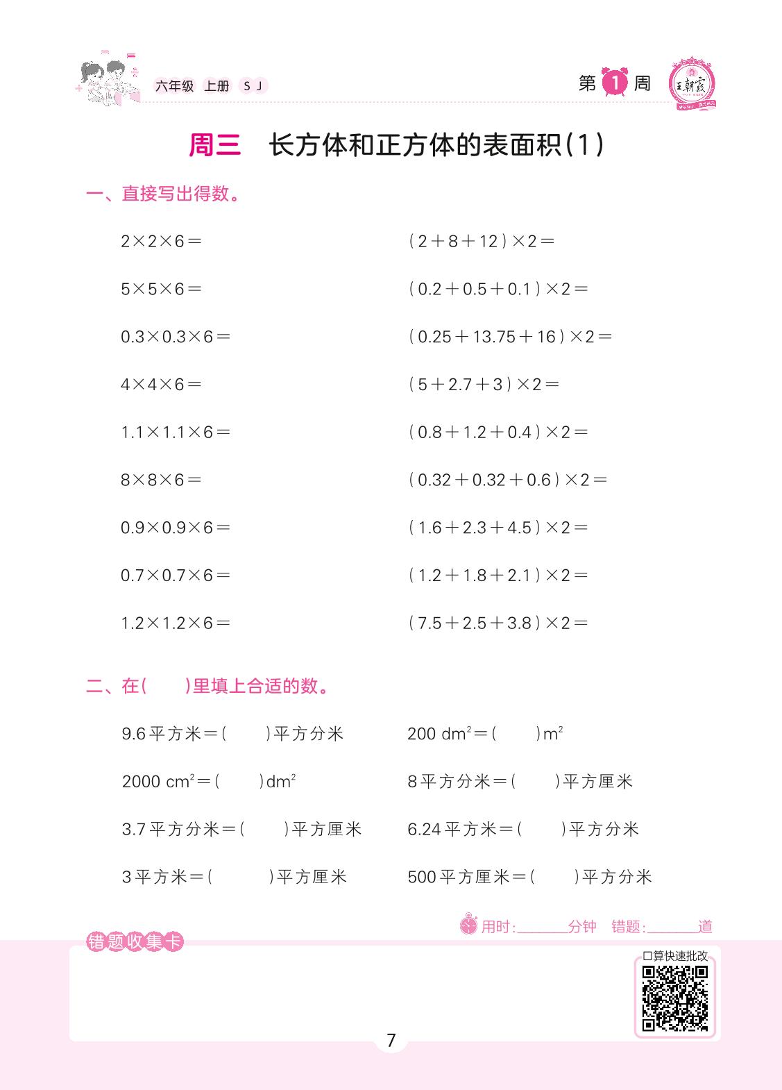 2022上册六年级数学苏教版 第1周 周三