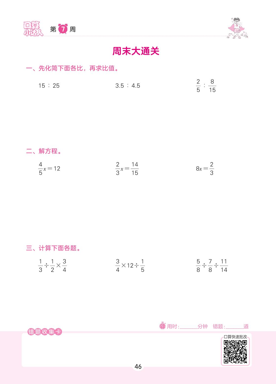 2022上册六年级数学苏教版 第7周 周末大通关