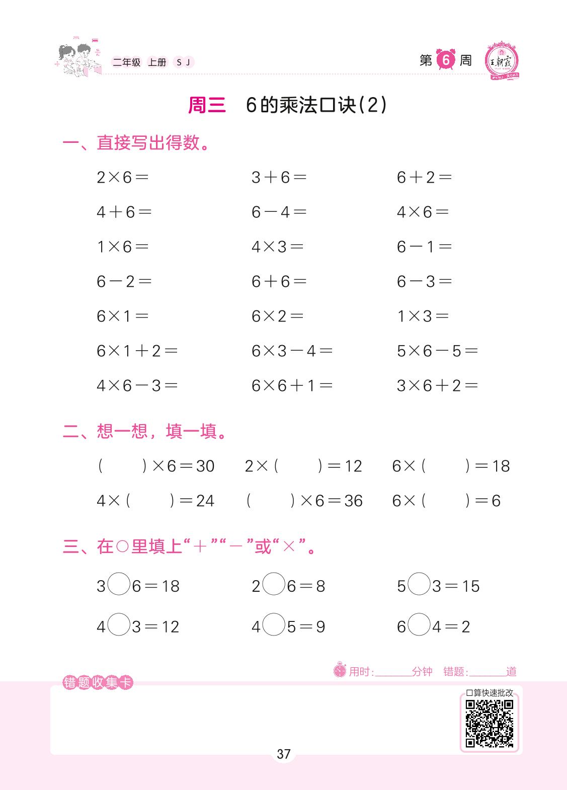 2022上册二年级数学苏教版 第6周 周三