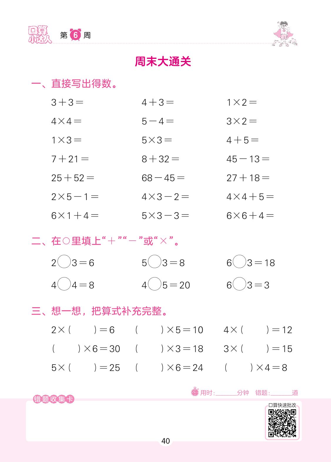 2022上册二年级数学苏教版 第6周 周末大通关