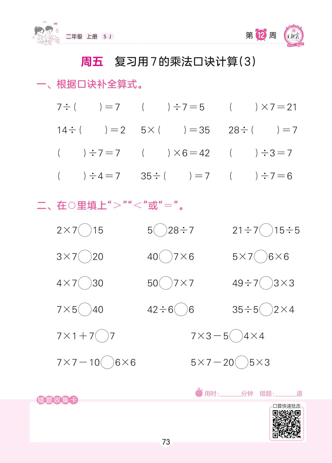 2022上册二年级数学苏教版 第12周 周五