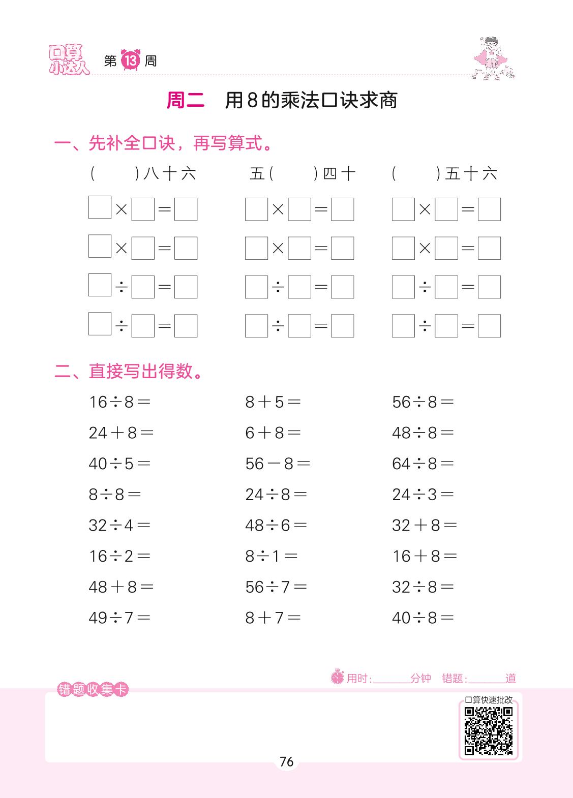 2022上册二年级数学苏教版 第13周 周二