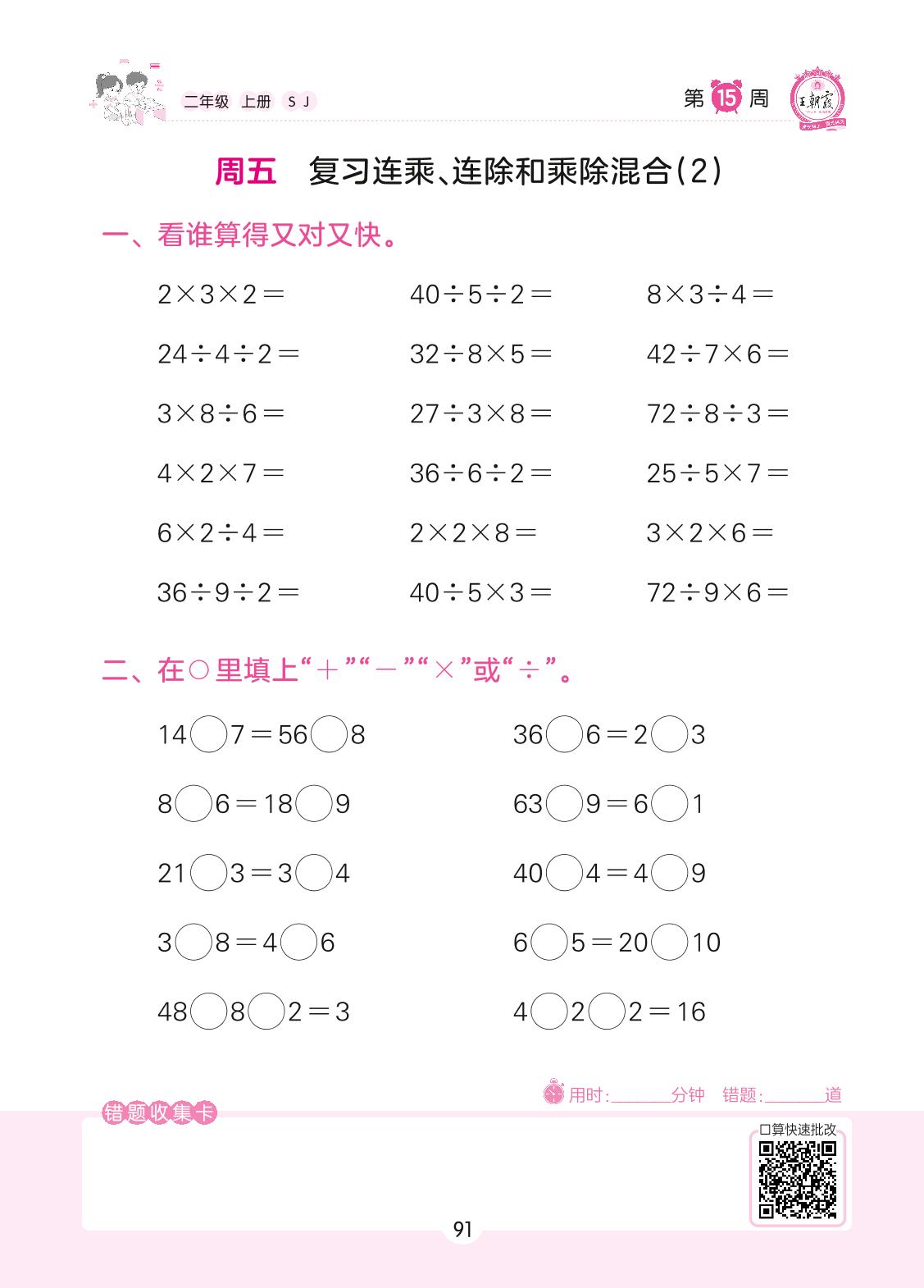 2022上册二年级数学苏教版 第15周 周五