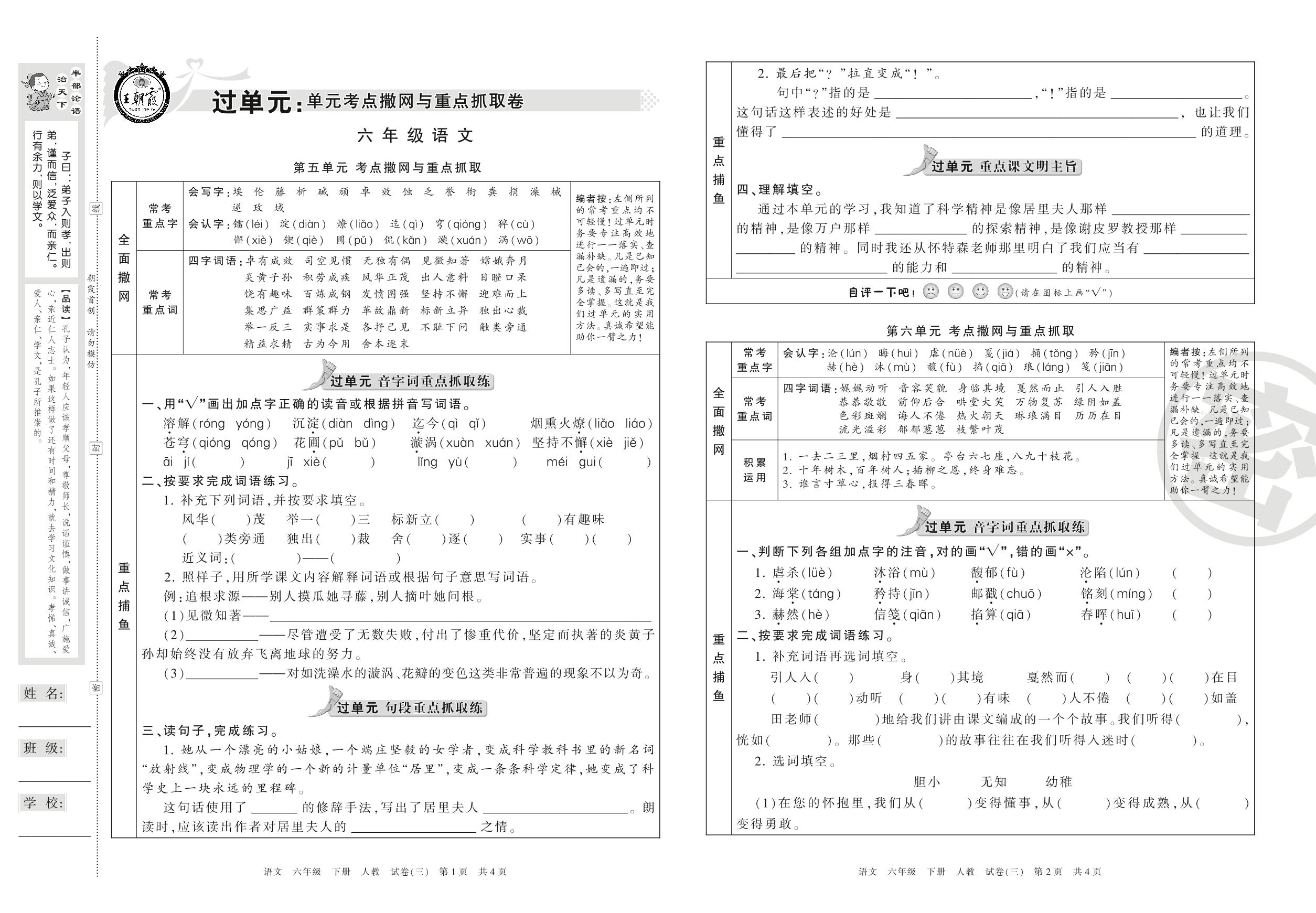 王朝霞期末过单元六年级下册语文(人教版)_R21080285813【3】