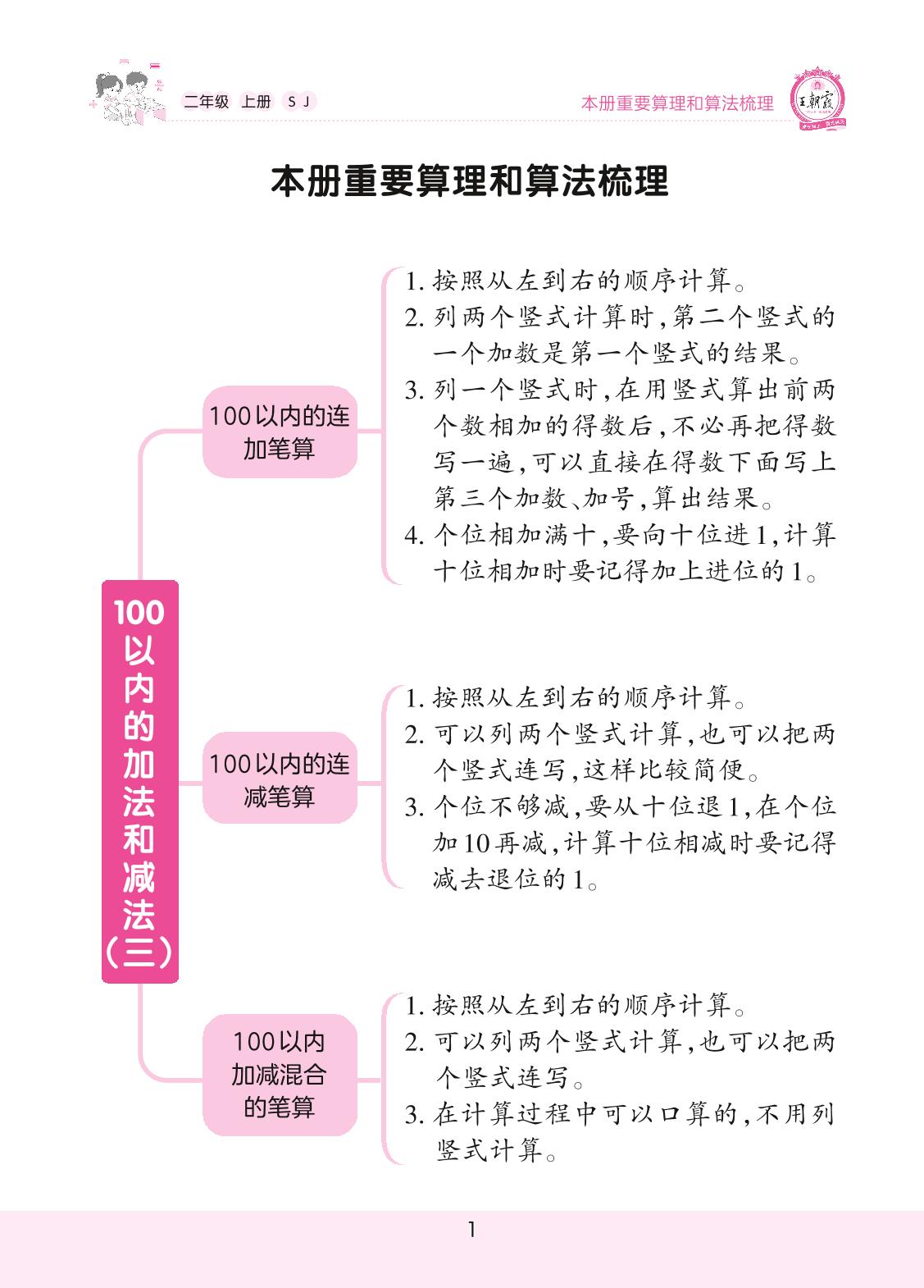 2022上册二年级数学苏教版 本册重要算理和算法梳理