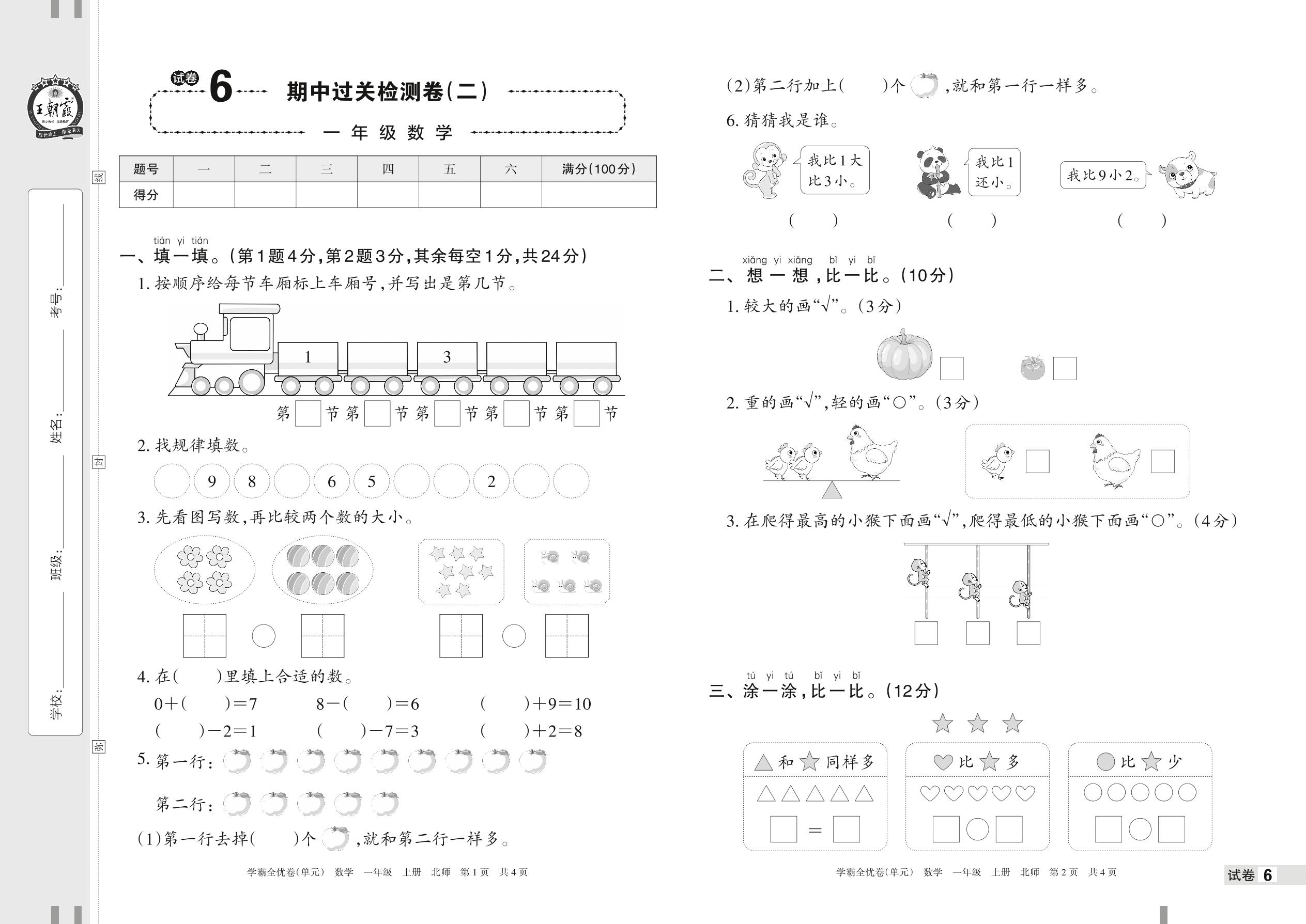 2022上册一年级数学北师版 试卷6 期中过关检测卷(二)