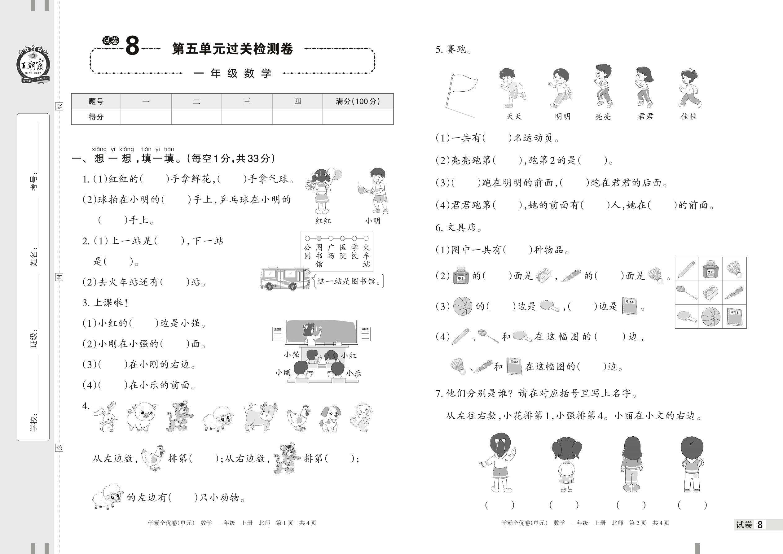 2022上册一年级数学北师版 试卷8 第五单元过关检测卷