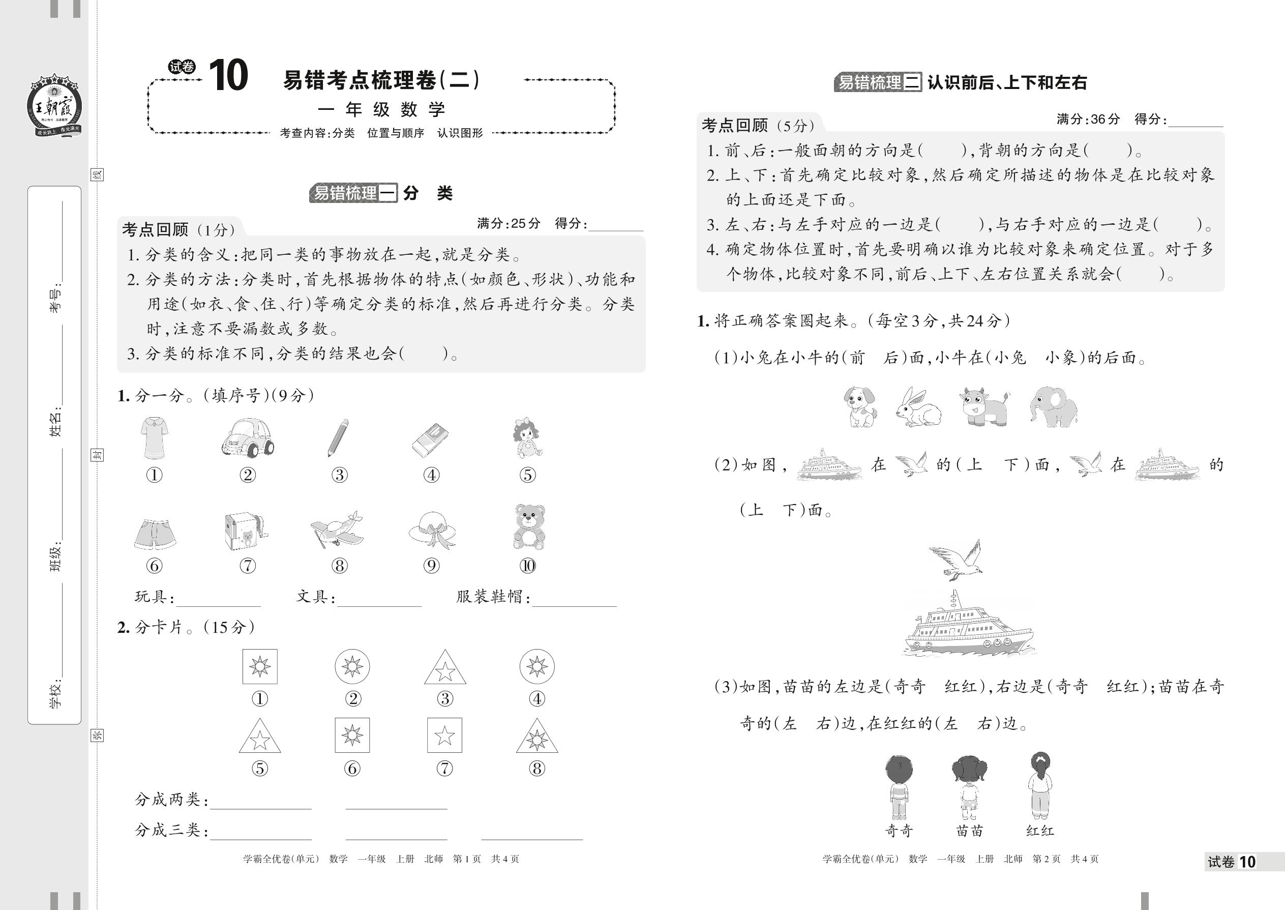 2022上册一年级数学北师版 试卷10 易错考点梳理卷(二)