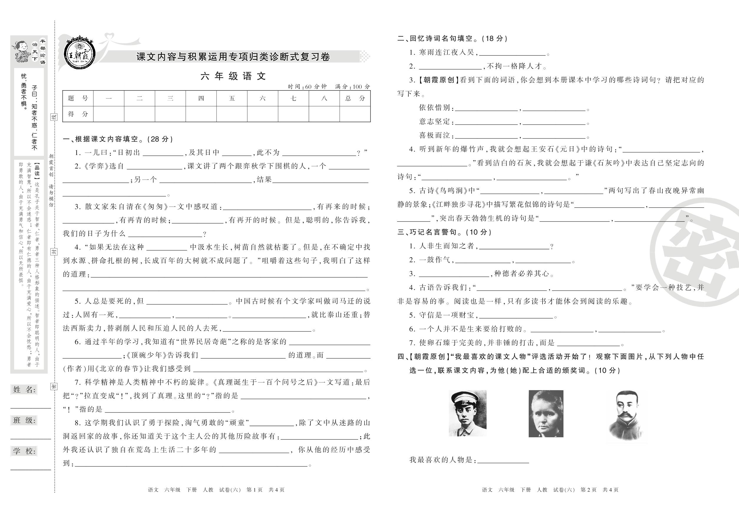 王朝霞期末专项卷六年级下册语文(人教版)_R21080285839【6】