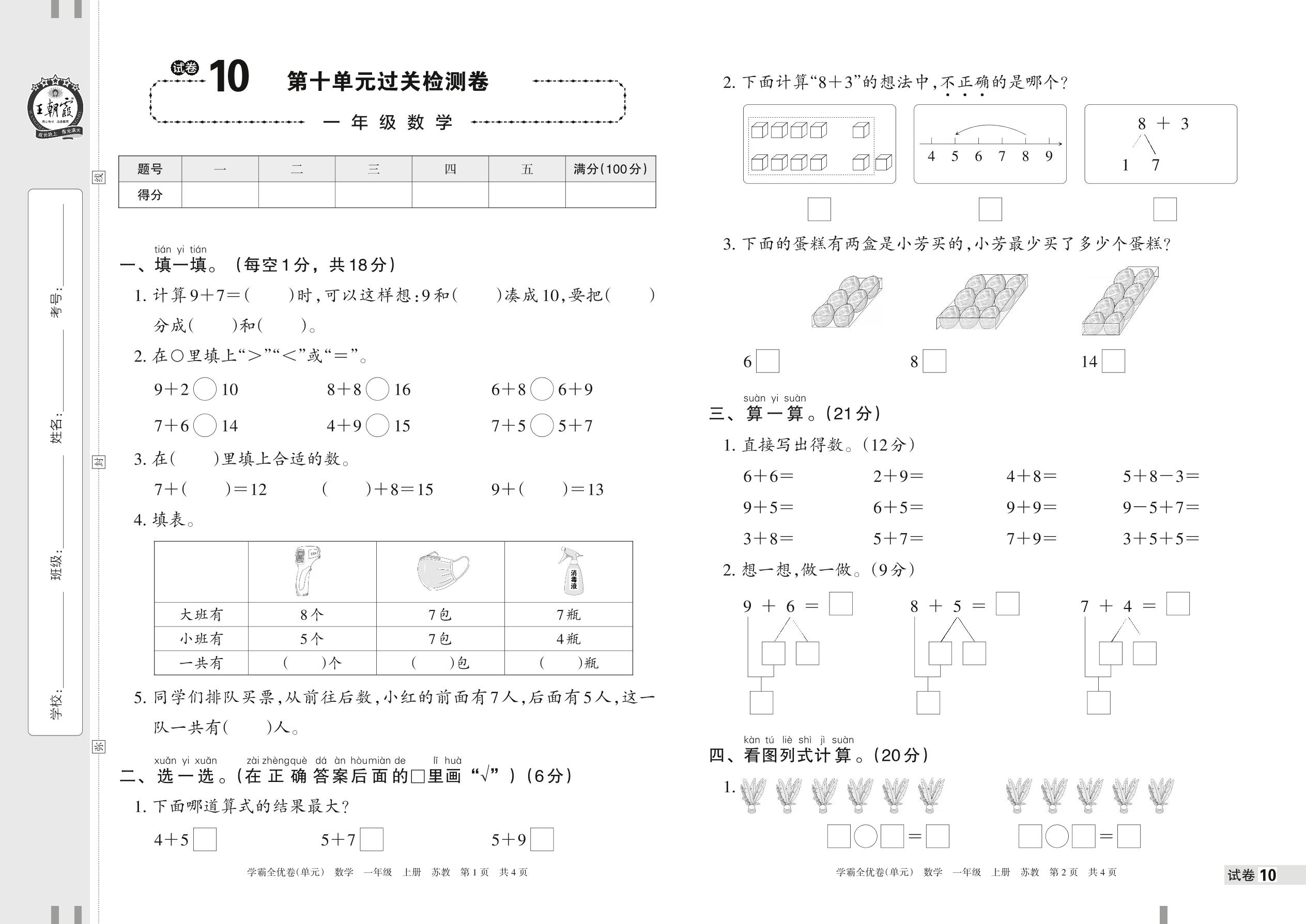 一年级数学苏教版上册单元卷