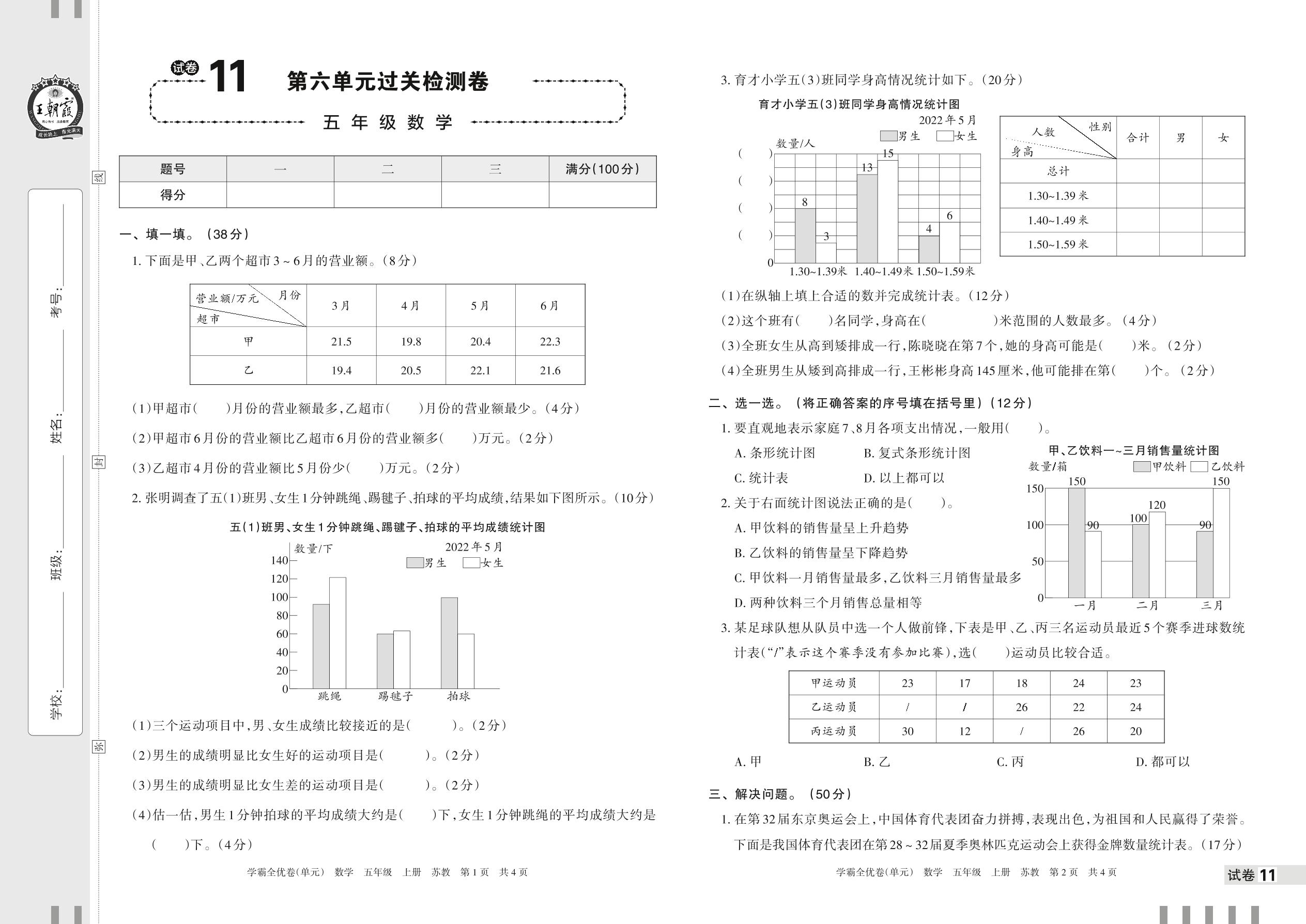 2022上册五年级数学苏教版 试卷11 第六单元过关检测卷