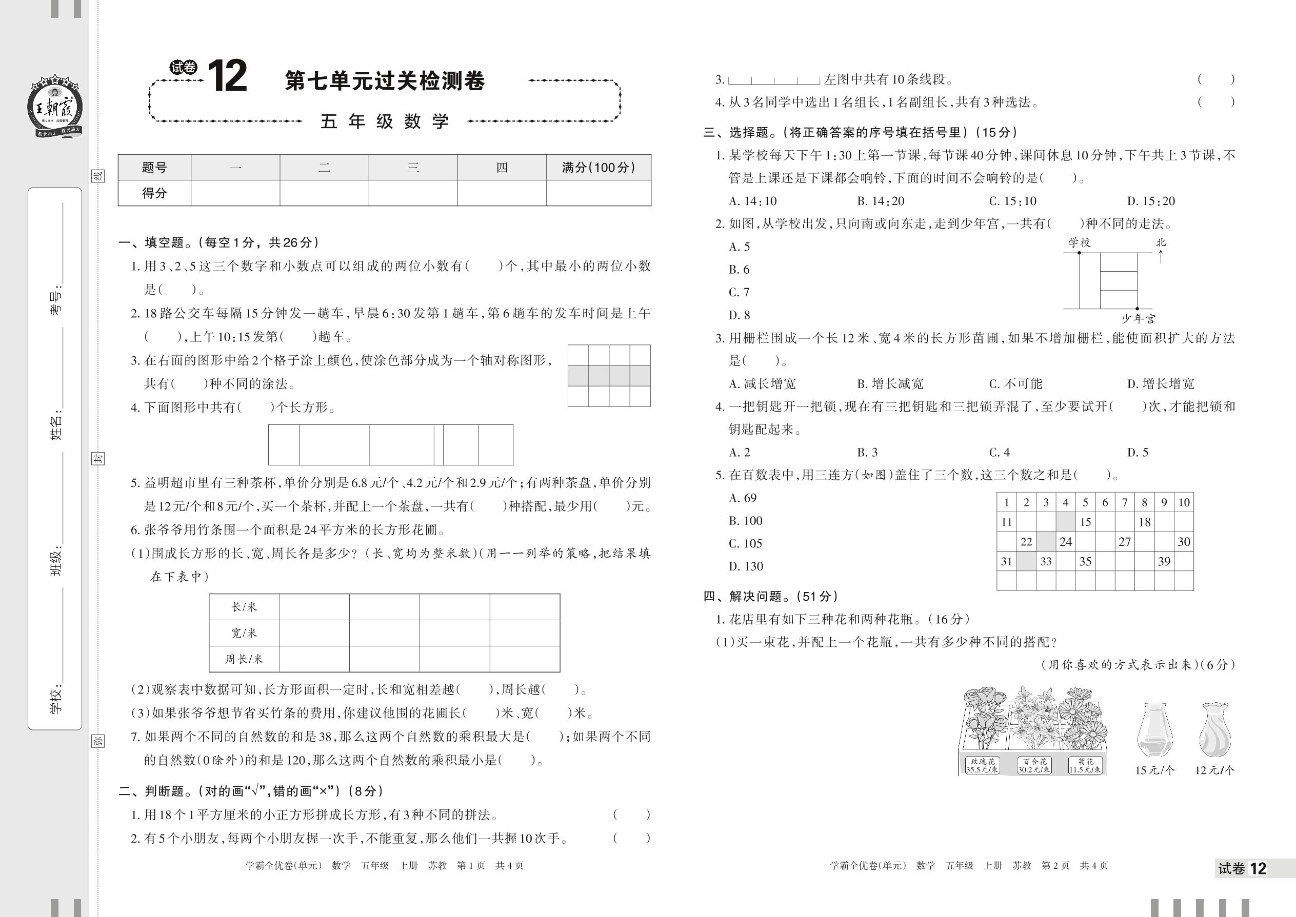 2022上册五年级数学苏教版 试卷12 第七单元过关检测卷