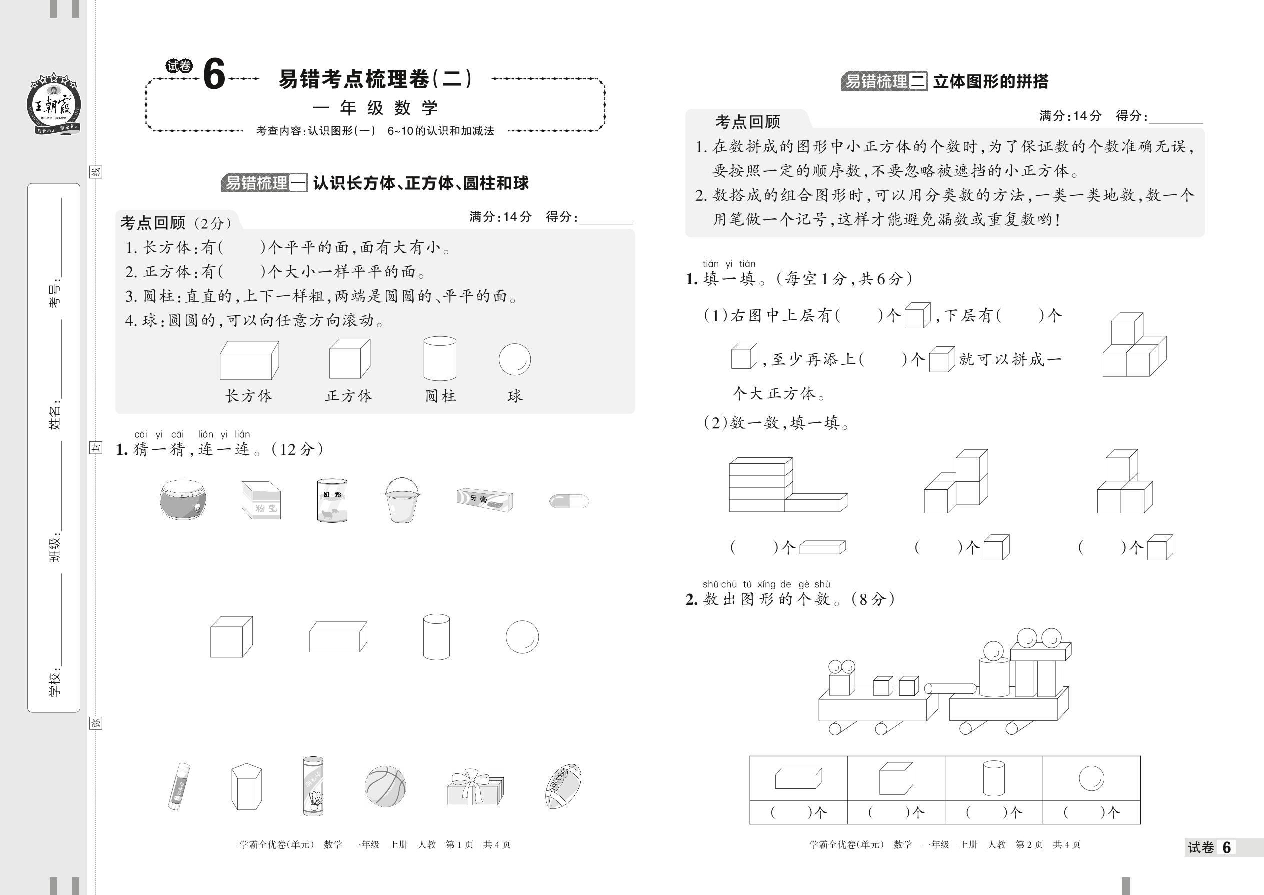 2022上册一年级数学人教版 试卷6 易错考点梳理卷(二)