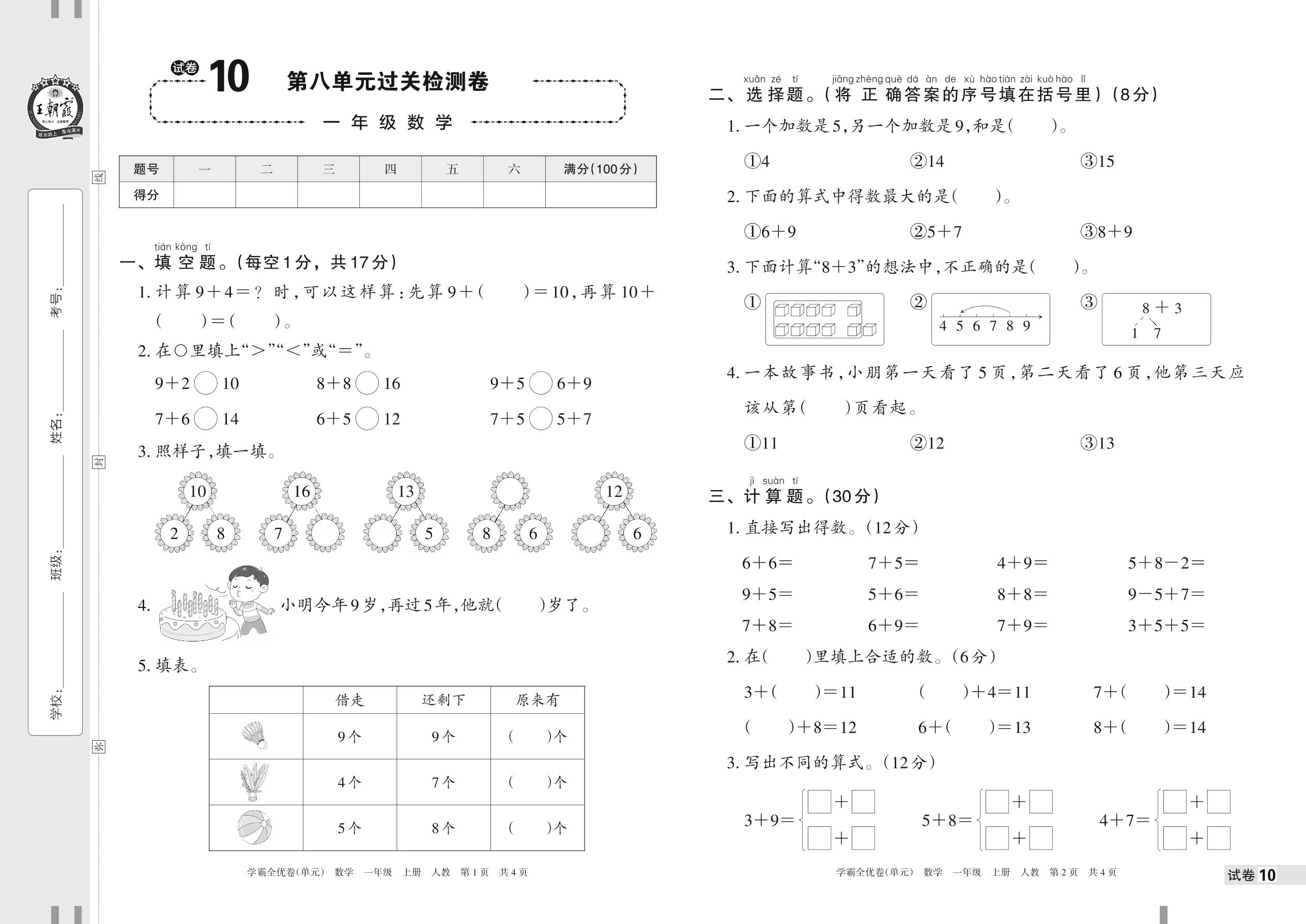 2022上册一年级数学人教版 试卷10 第八单元过关检测卷