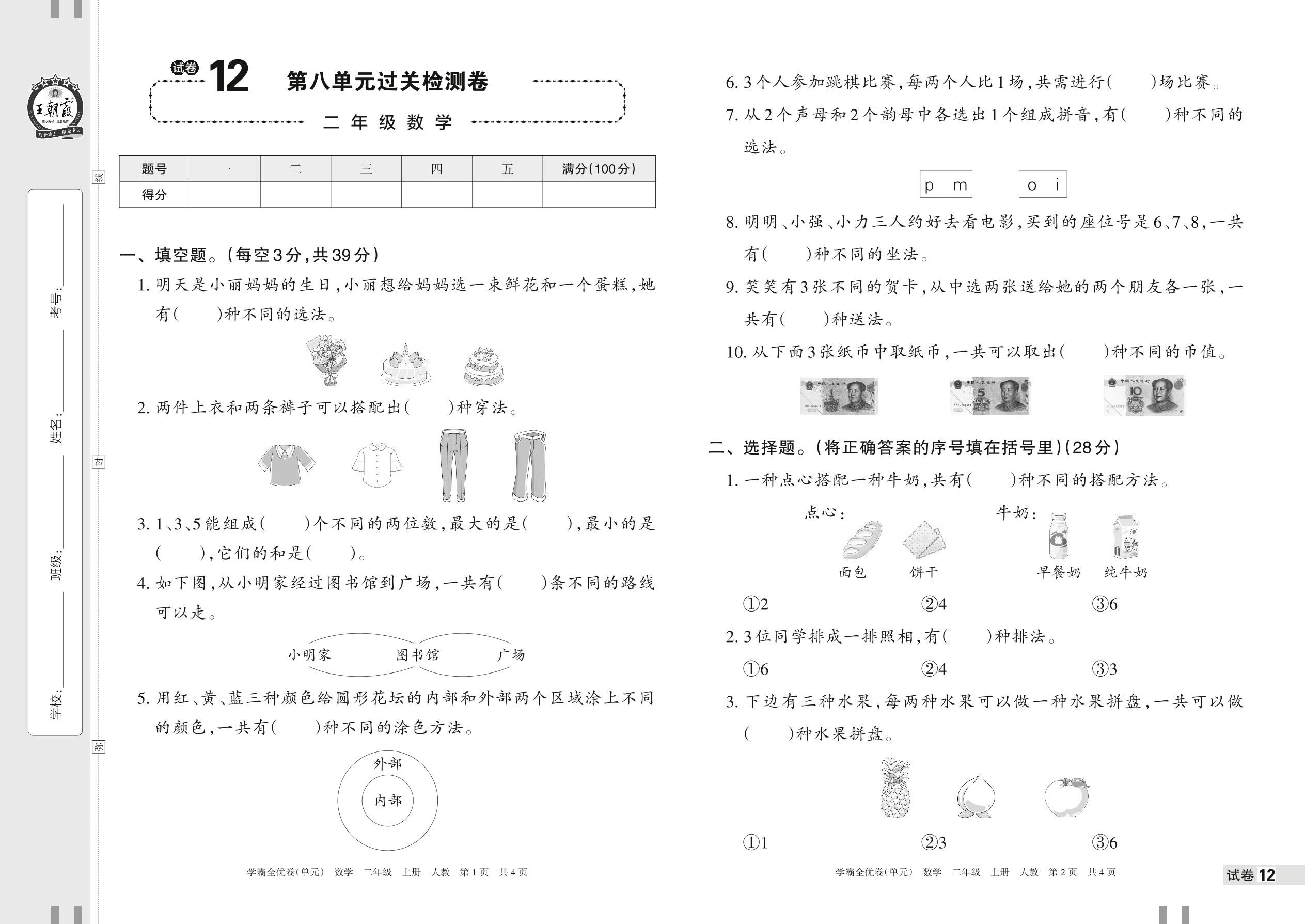 2022上册二年级数学人教版 试卷12 第八单元过关检测卷