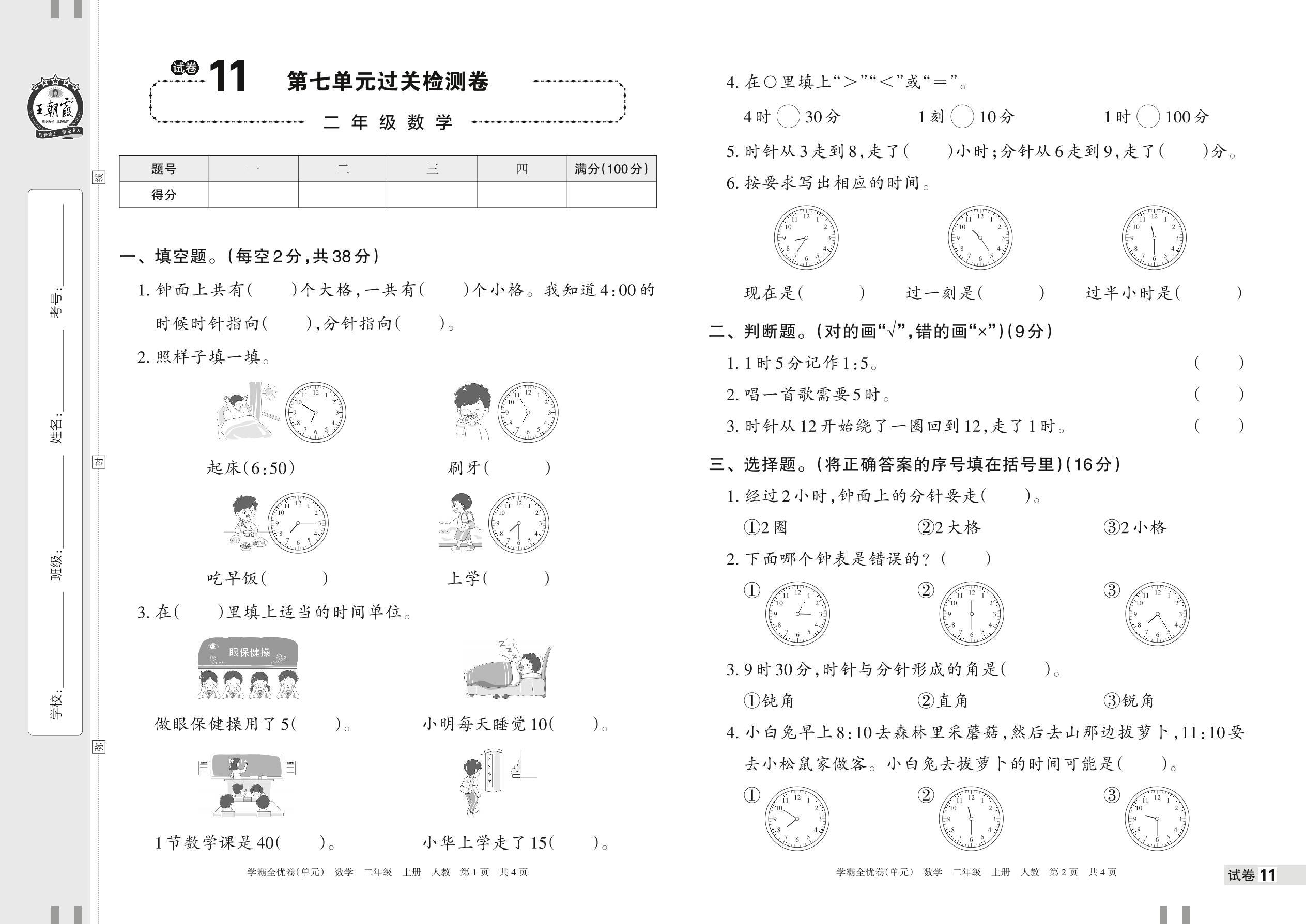 二年级数学人教版上册单元卷