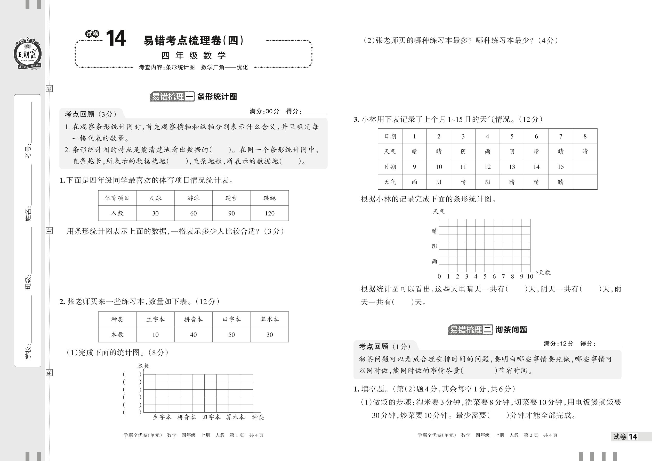 2022上册四年级数学人教版 试卷14 易错考点梳理卷(四)