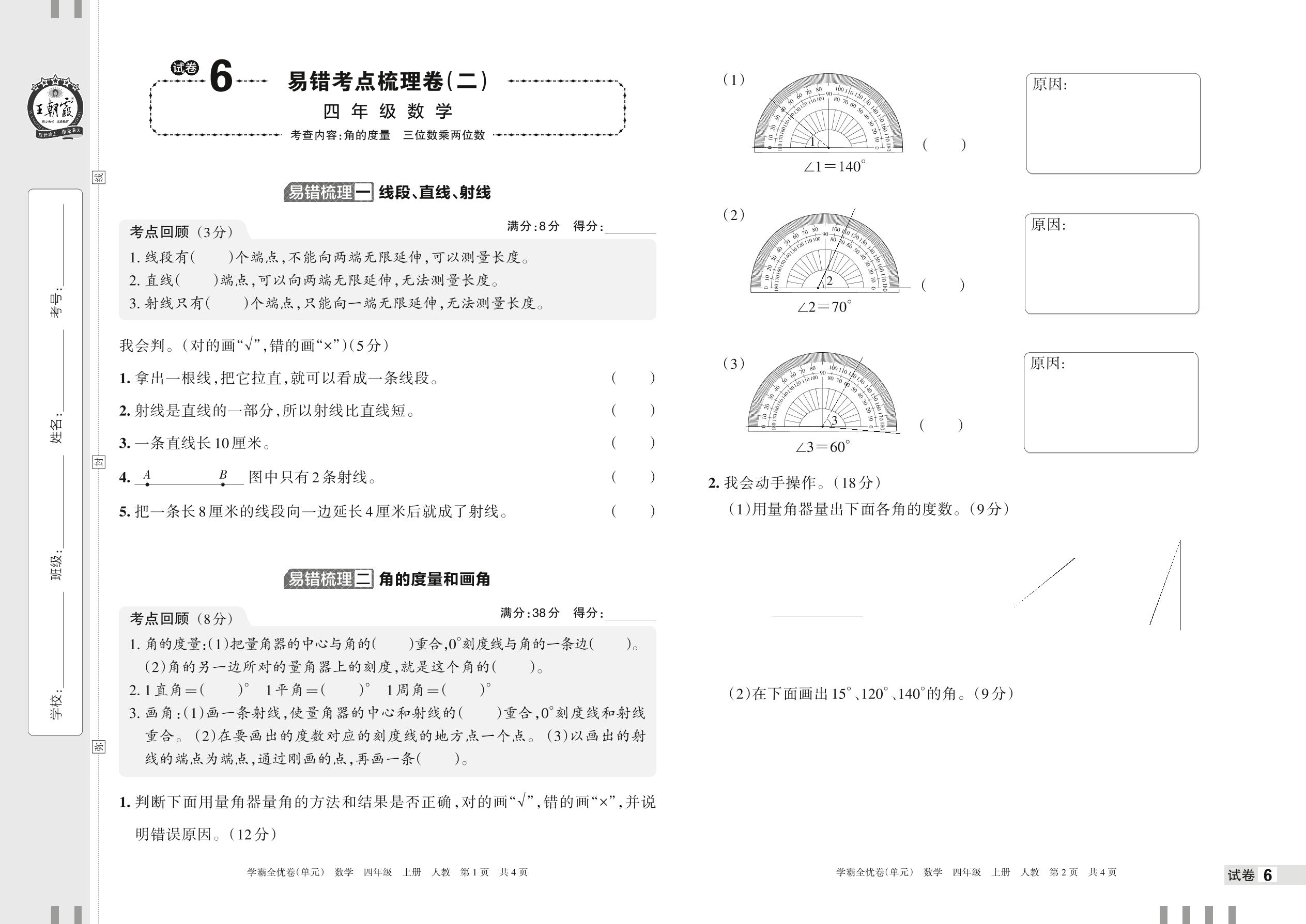 2022上册四年级数学人教版 试卷6 易错考点梳理卷(二)