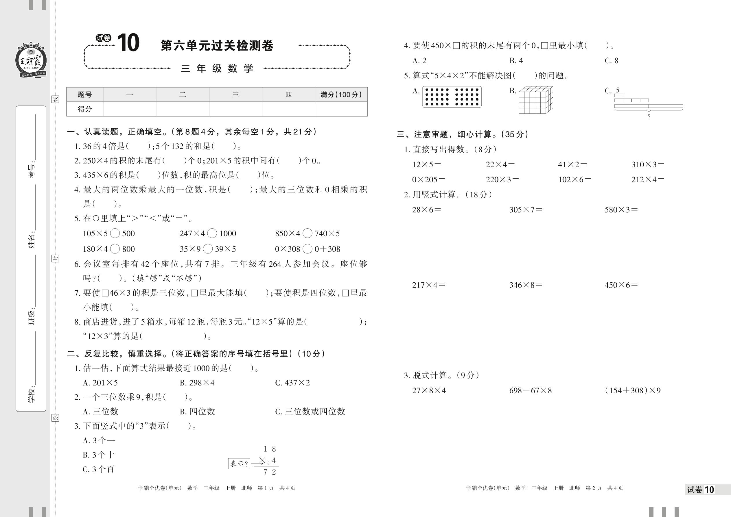 2022上册三年级数学北师版 试卷10 第六单元过关检测卷