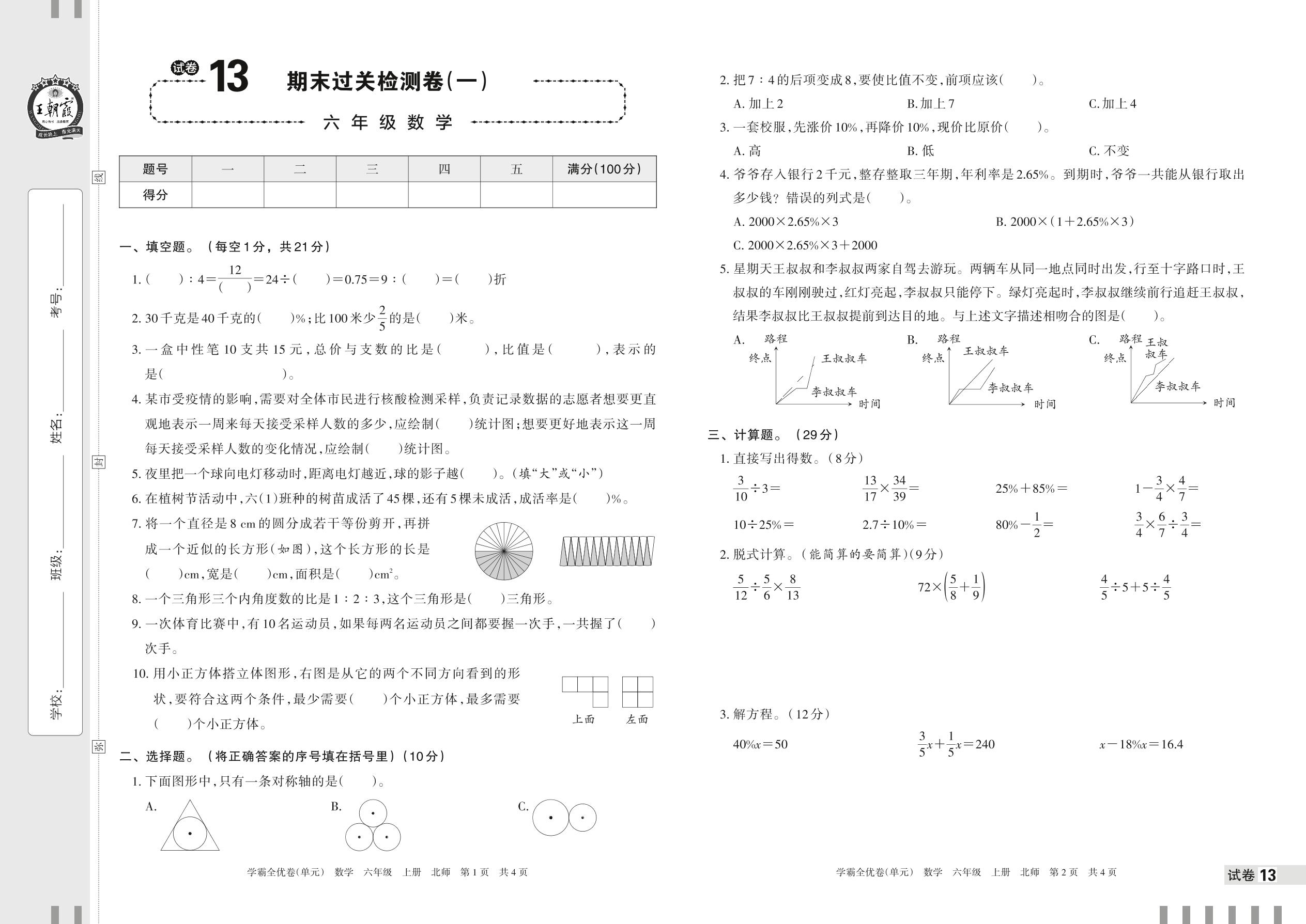 2022上册六年级数学北师版 试卷13 期末过关检测卷(一)