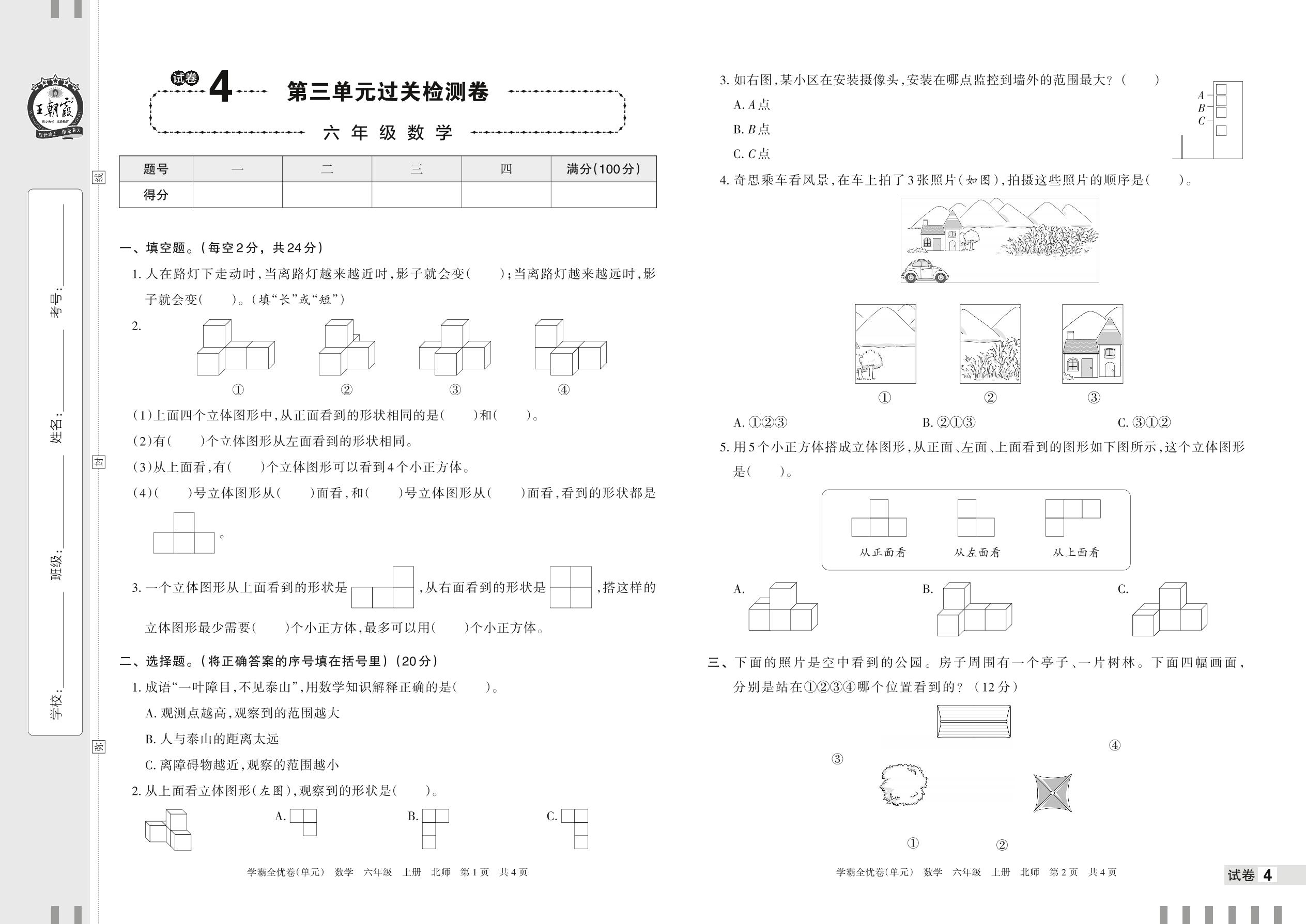 2022上册六年级数学北师版 试卷4 第三单元过关检测卷