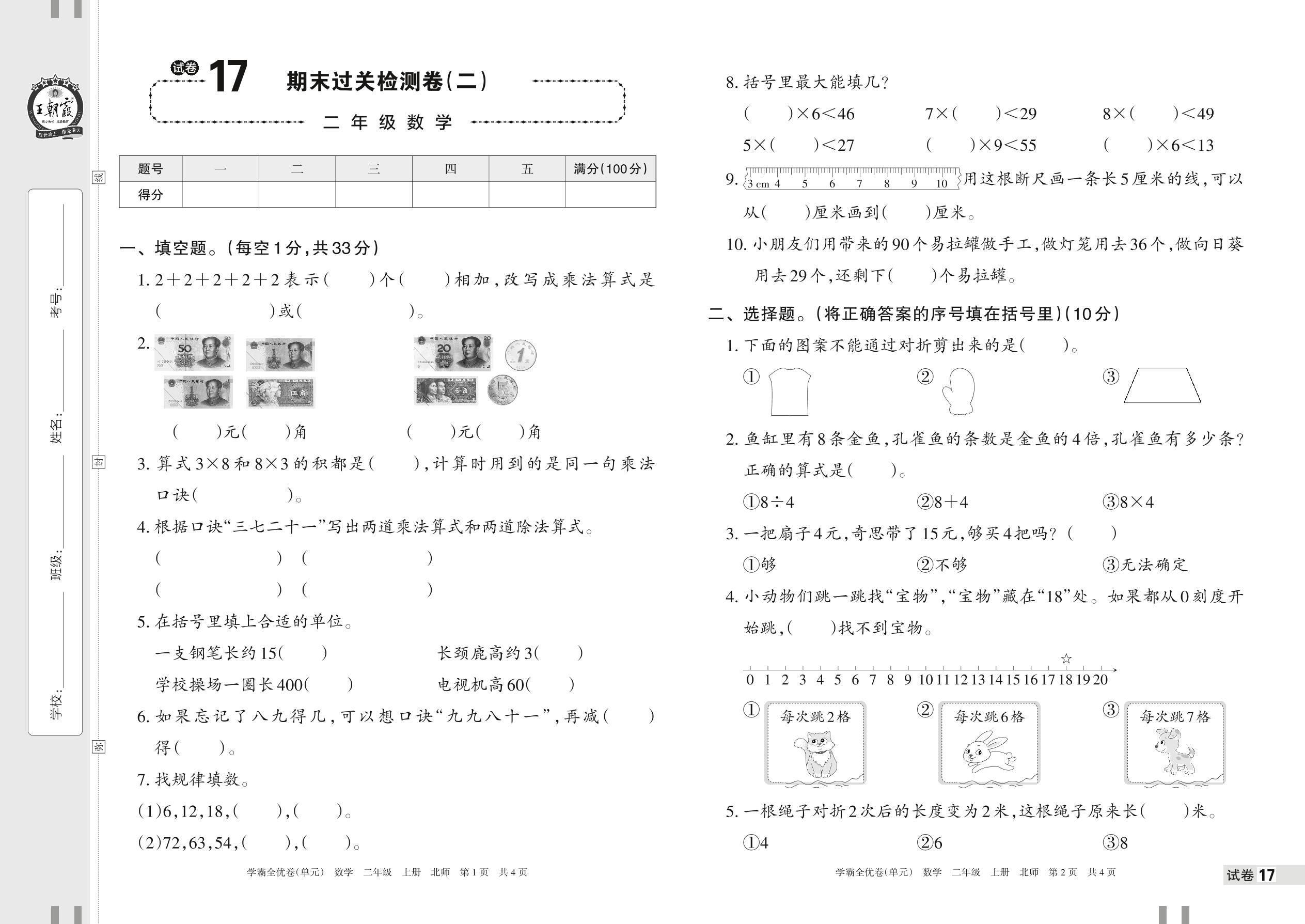 2022上册二年级数学北师版 试卷17 期末过关检测卷(二)