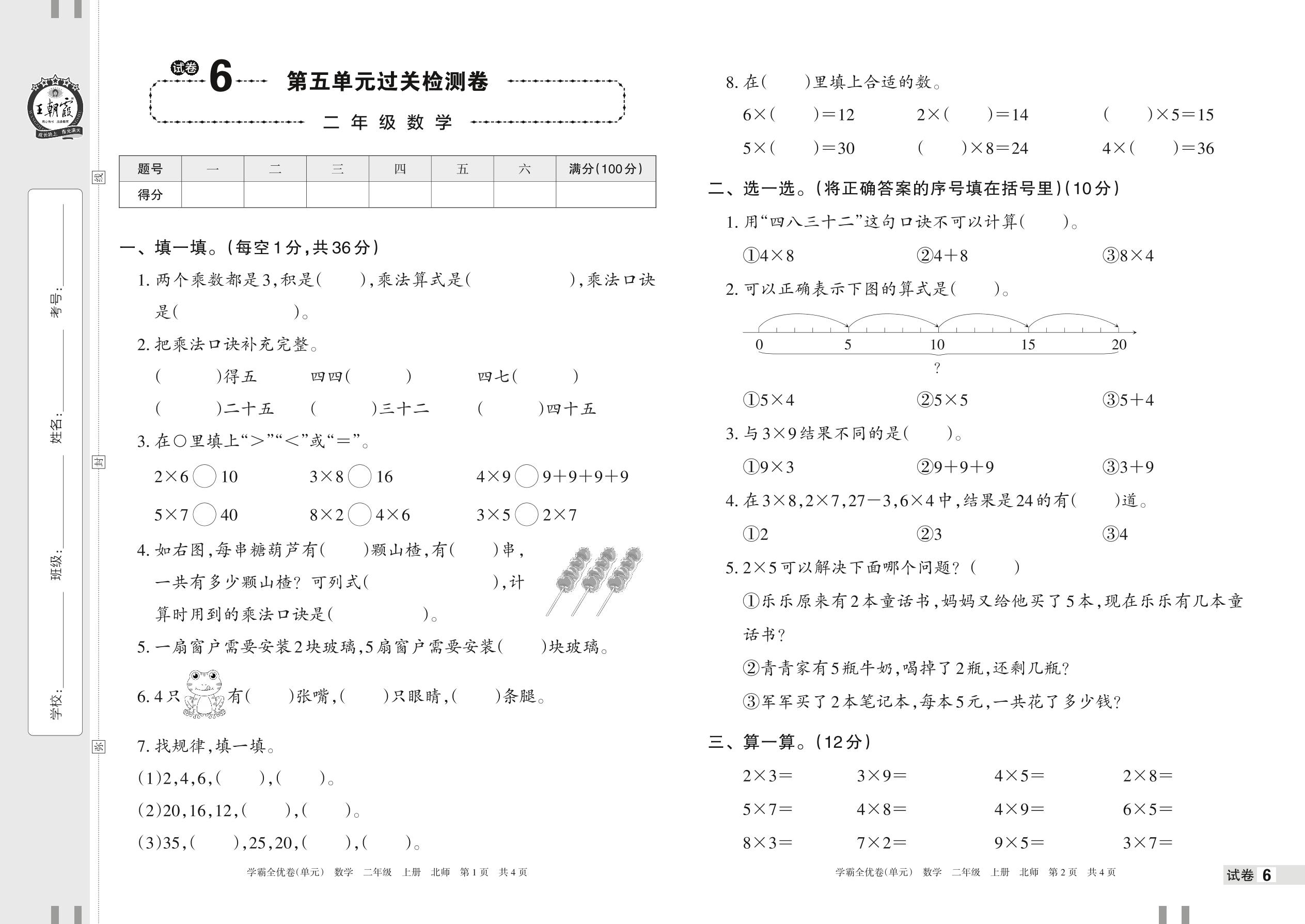 2022上册二年级数学北师版 试卷6 第五单元过关检测卷
