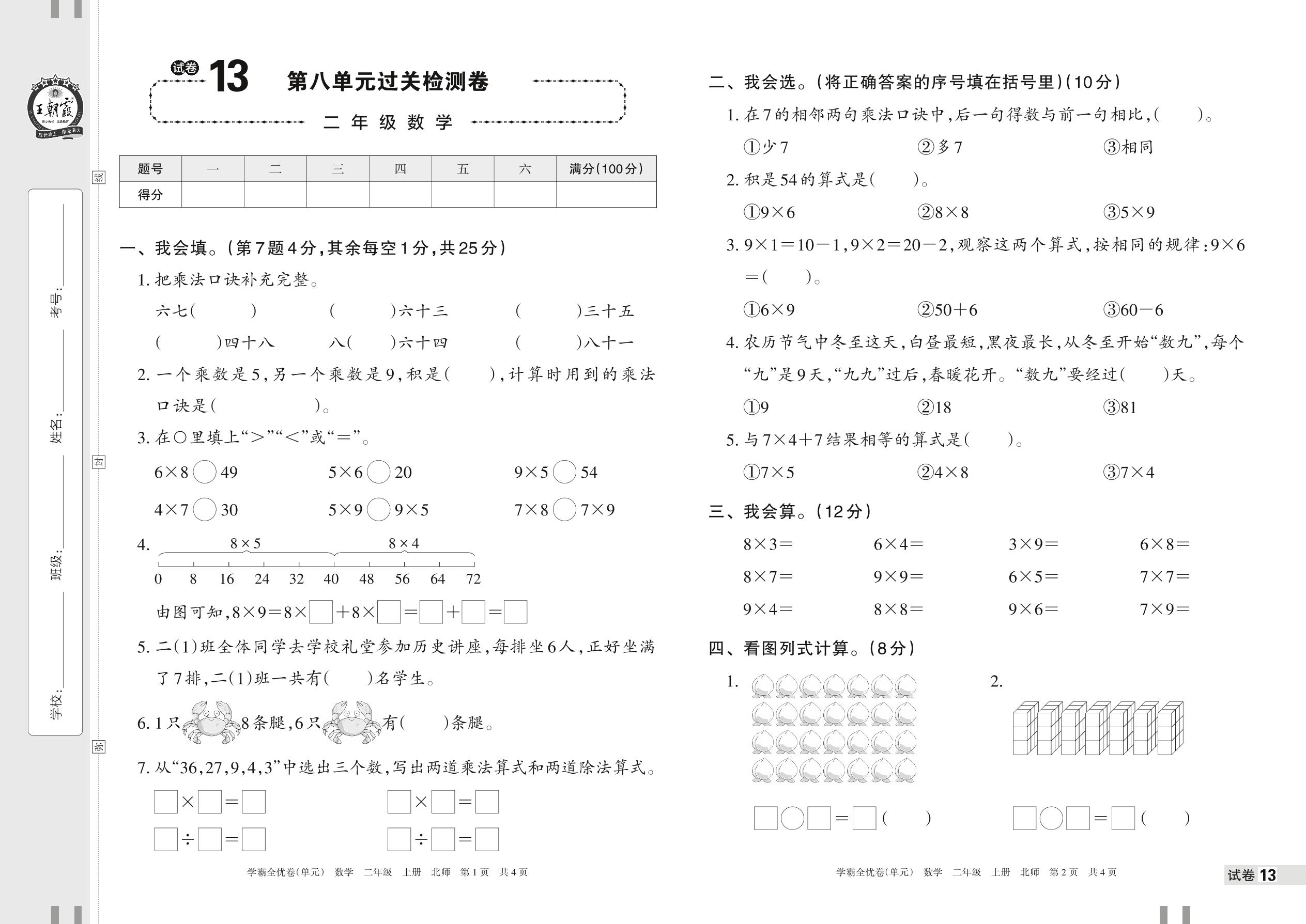 2022上册二年级数学北师版 试卷13 第八单元过关检测卷