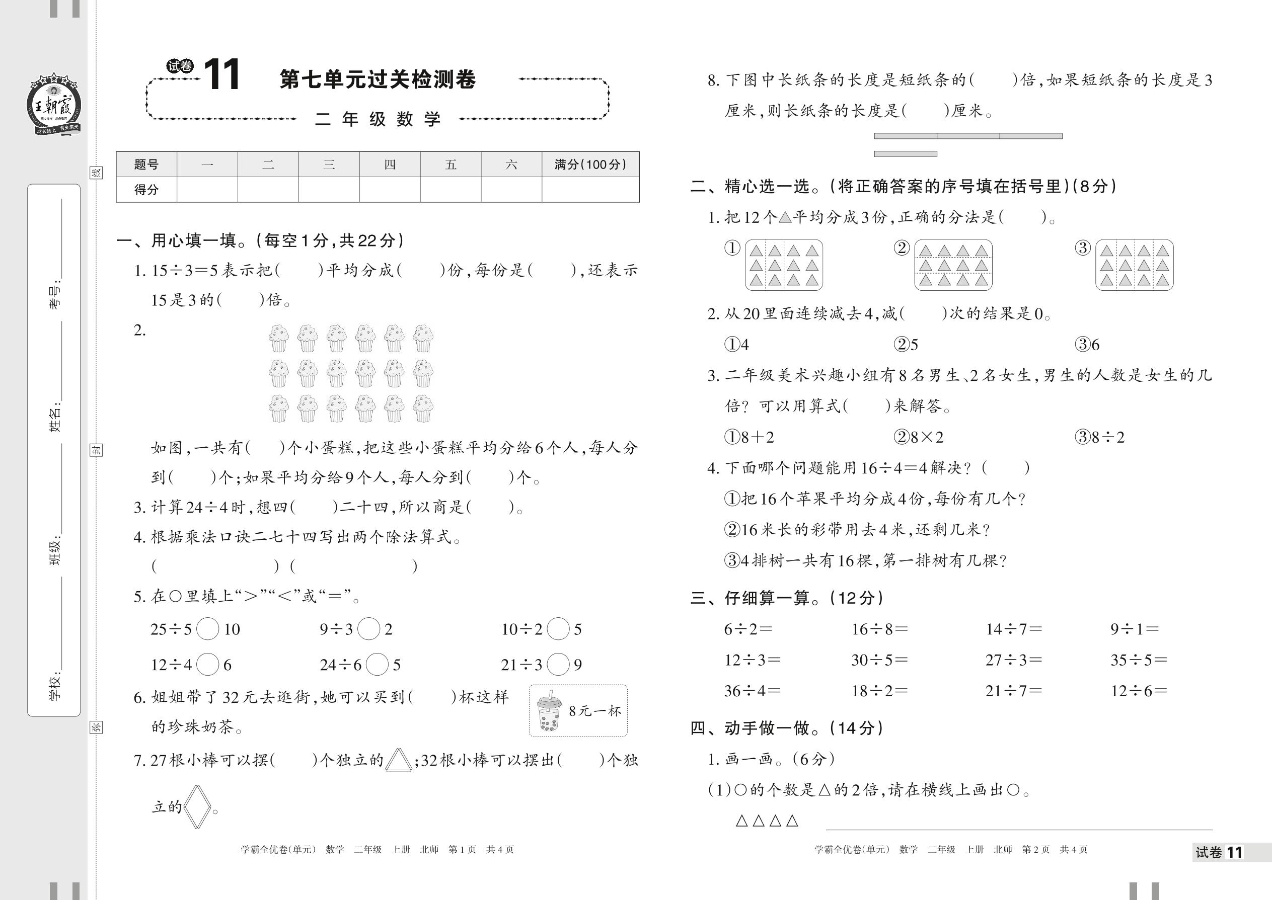2022上册二年级数学北师版 试卷11 第七单元过关检测卷