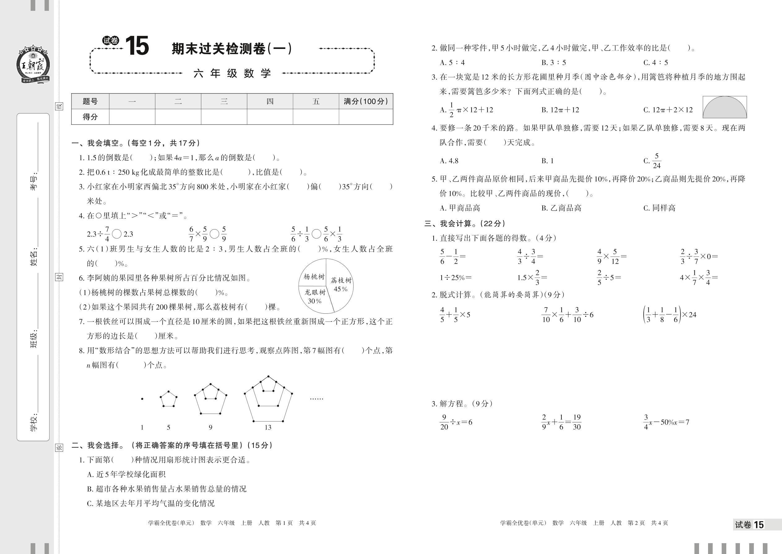 2022上册六年级数学人教版 试卷15 期末过关检测卷(一)
