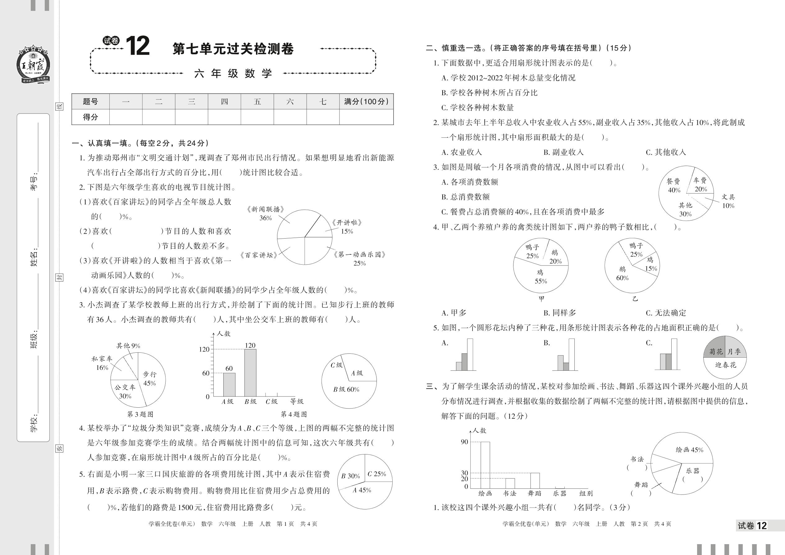 2022上册六年级数学人教版 试卷12 第七单元过关检测卷