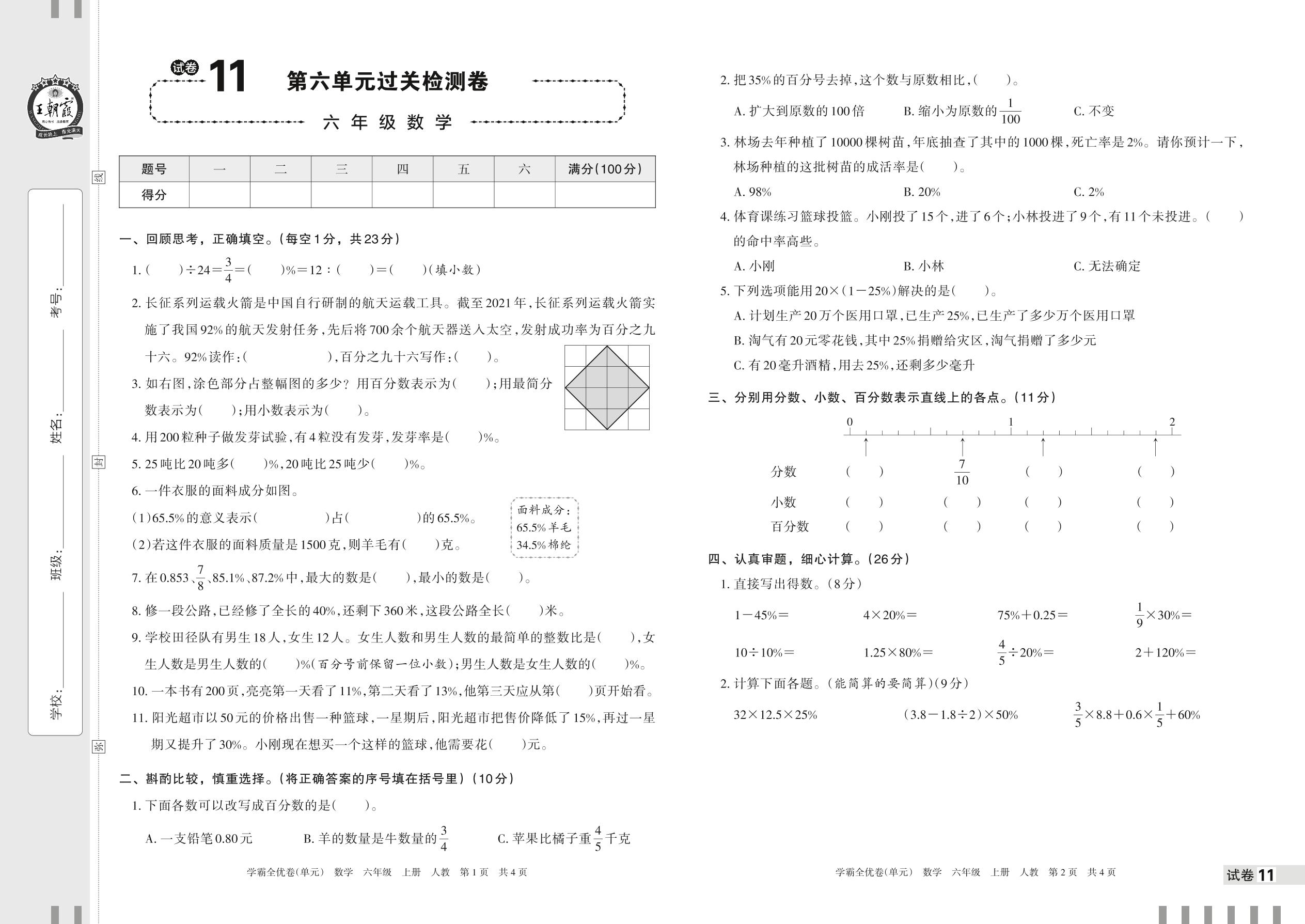 2022上册六年级数学人教版 试卷11 第六单元过关检测卷
