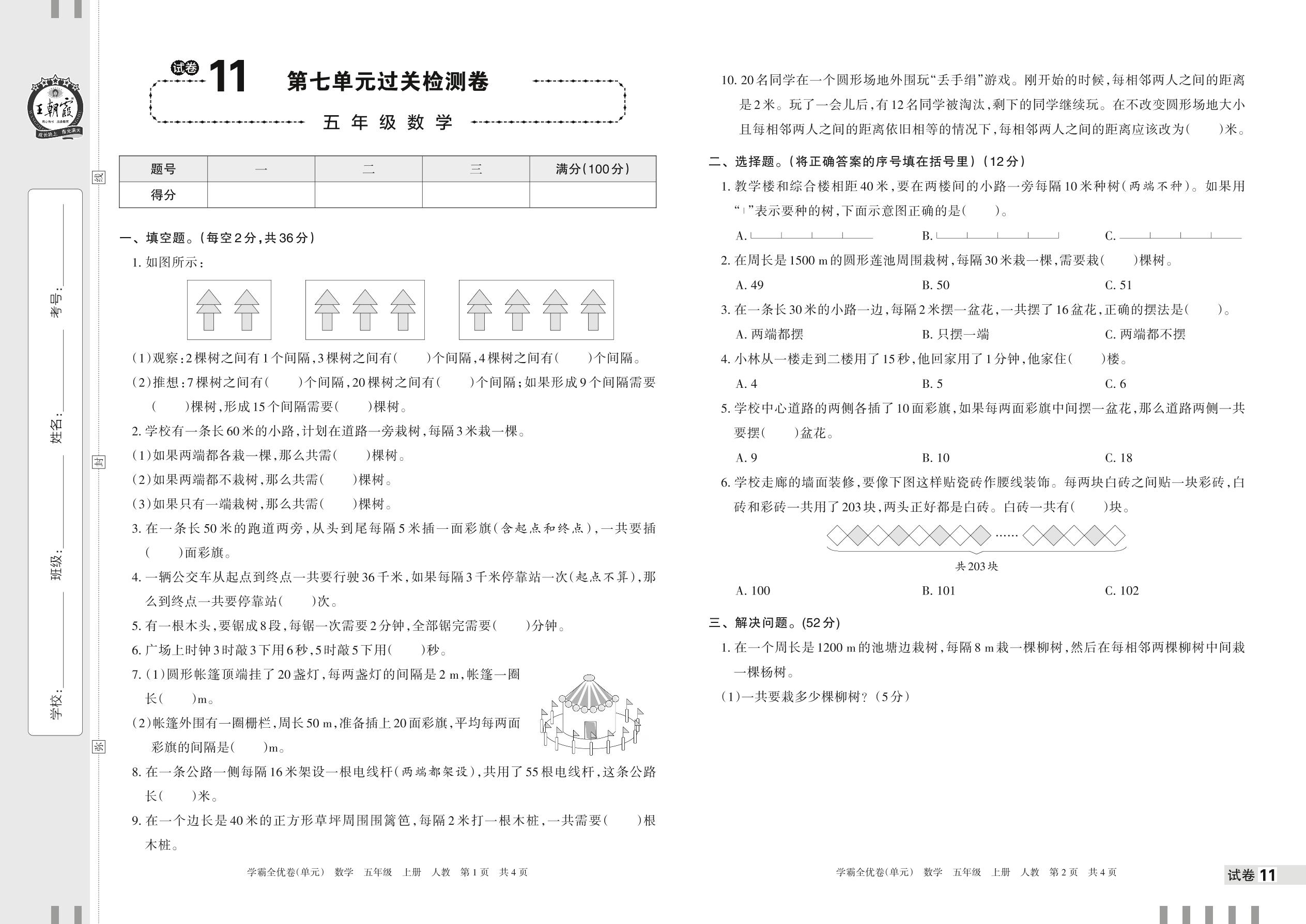 2022上册五年级数学人教版 试卷11 第七单元过关检测卷