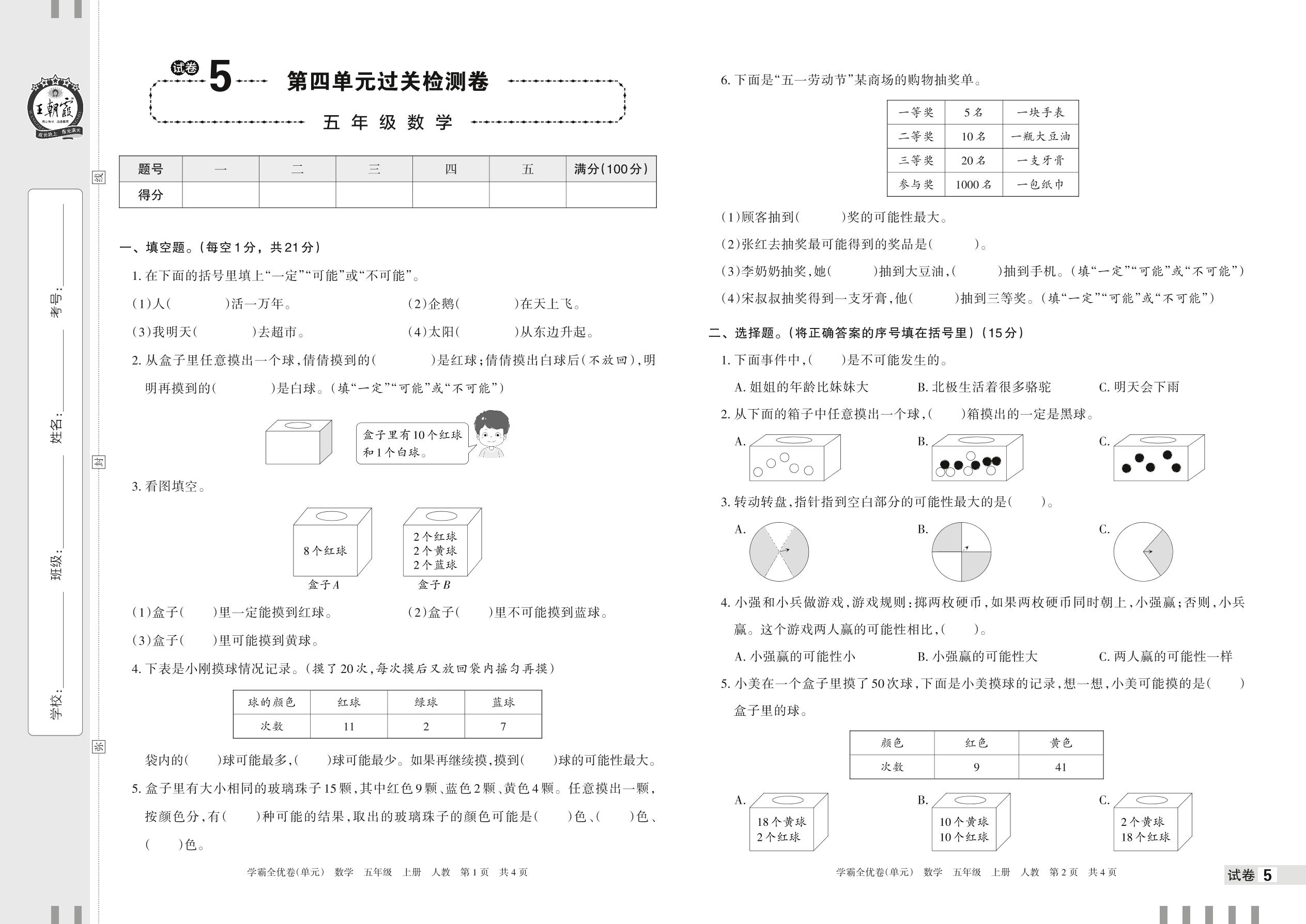 2022上册五年级数学人教版 试卷5 第四单元过关检测卷