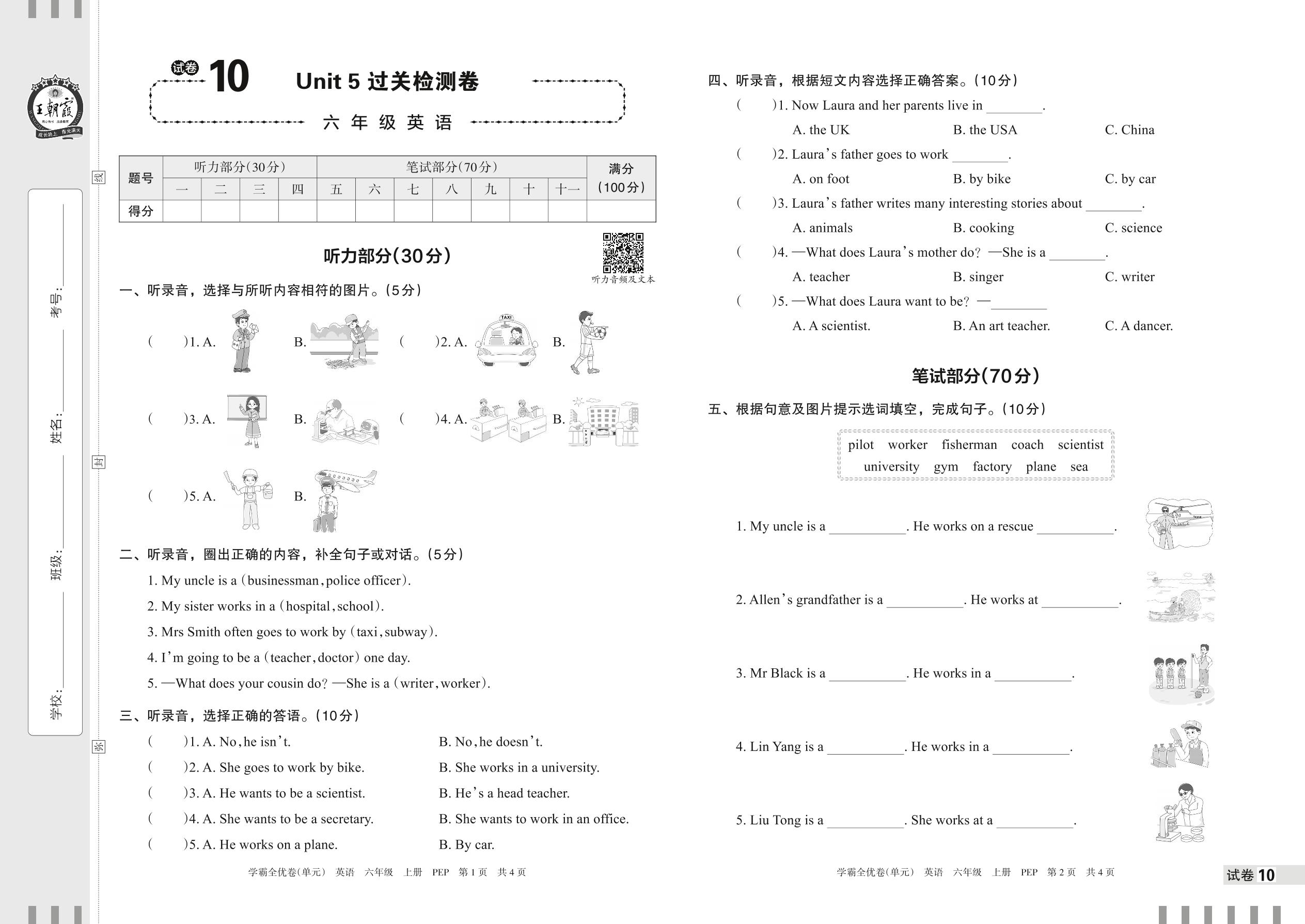 2022上册六年级英语人教PEP版 试卷10 Unit 5 过关检测卷