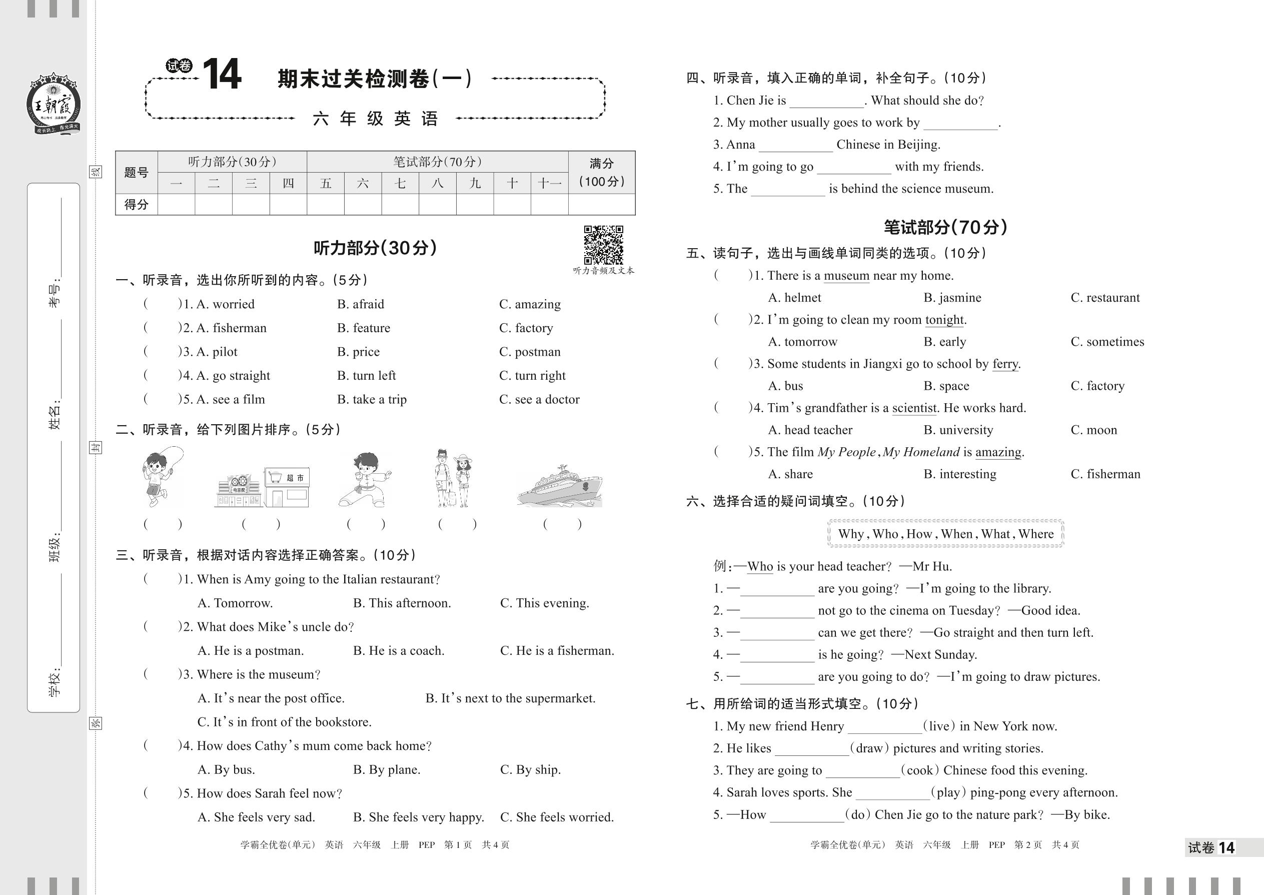 2022上册六年级英语人教PEP版 试卷14 期末过关检测卷(一)