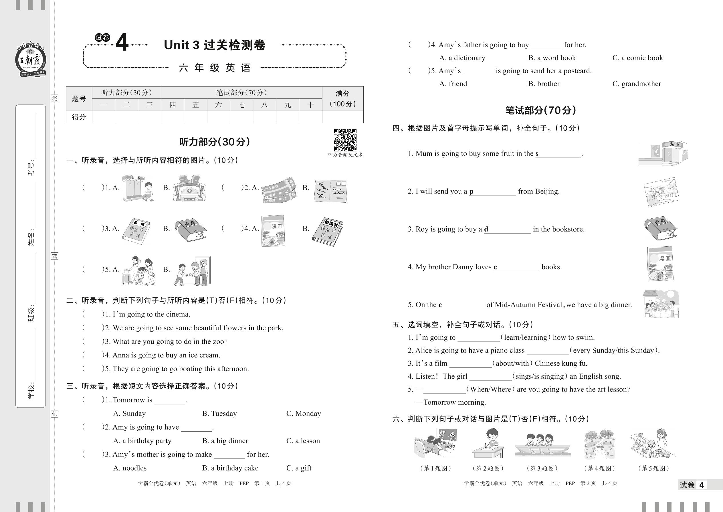 2022上册六年级英语人教PEP版 试卷4 Unit 3 过关检测卷