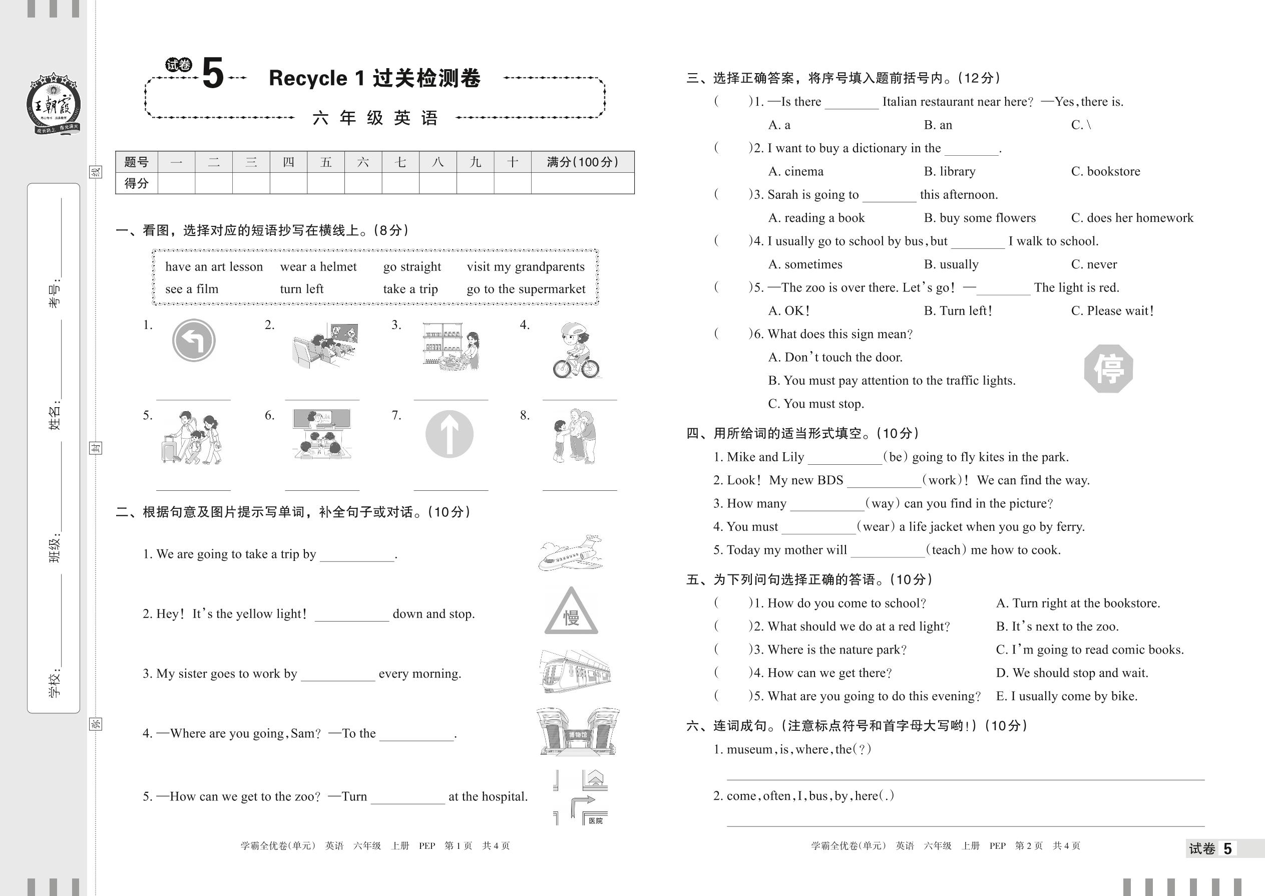 2022上册六年级英语人教PEP版 试卷5 Recycle 1 过关检测卷