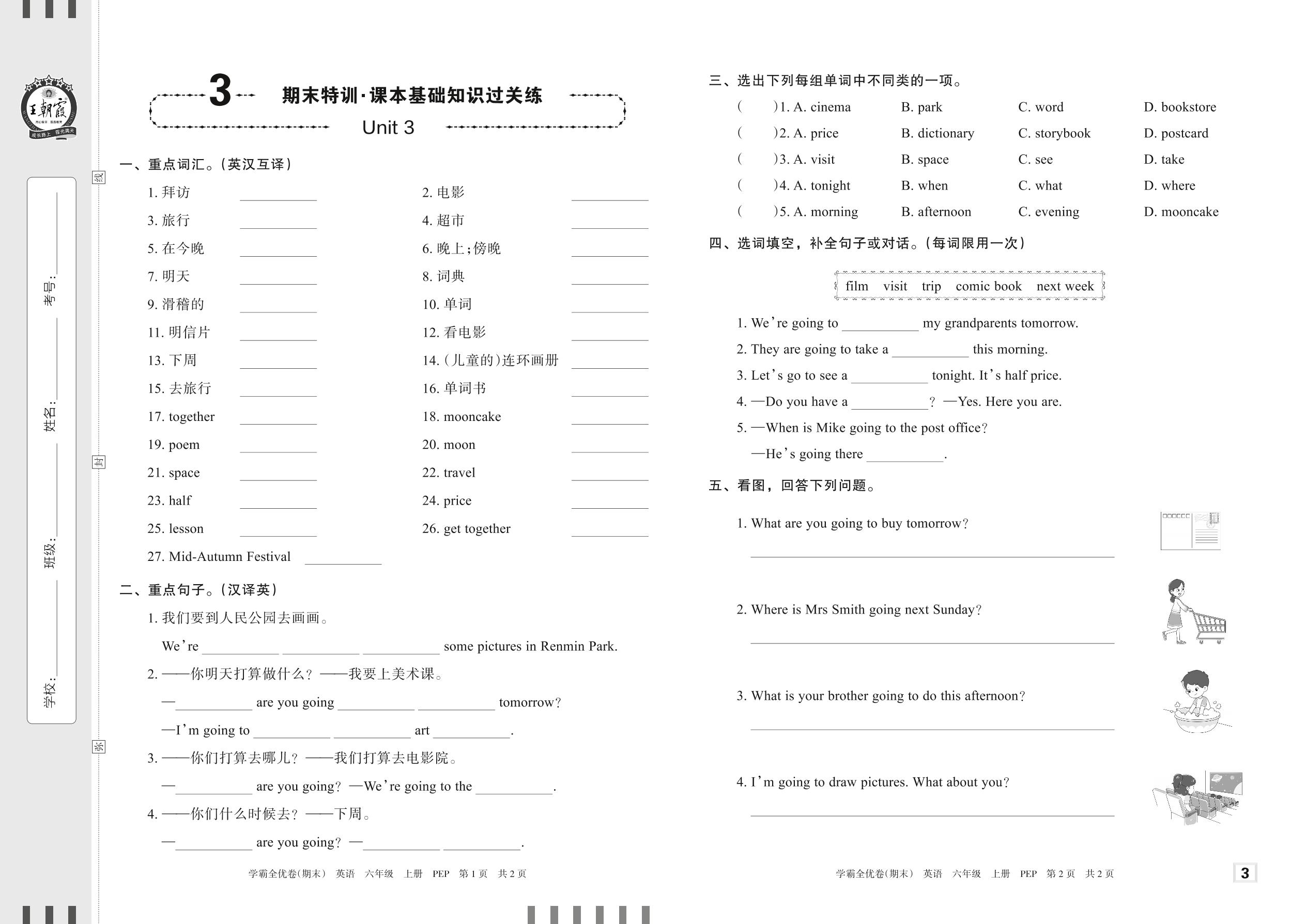 2022上册六年级英语人教PEP版 3 期末特训·课本基础知识过关练——Unit 3