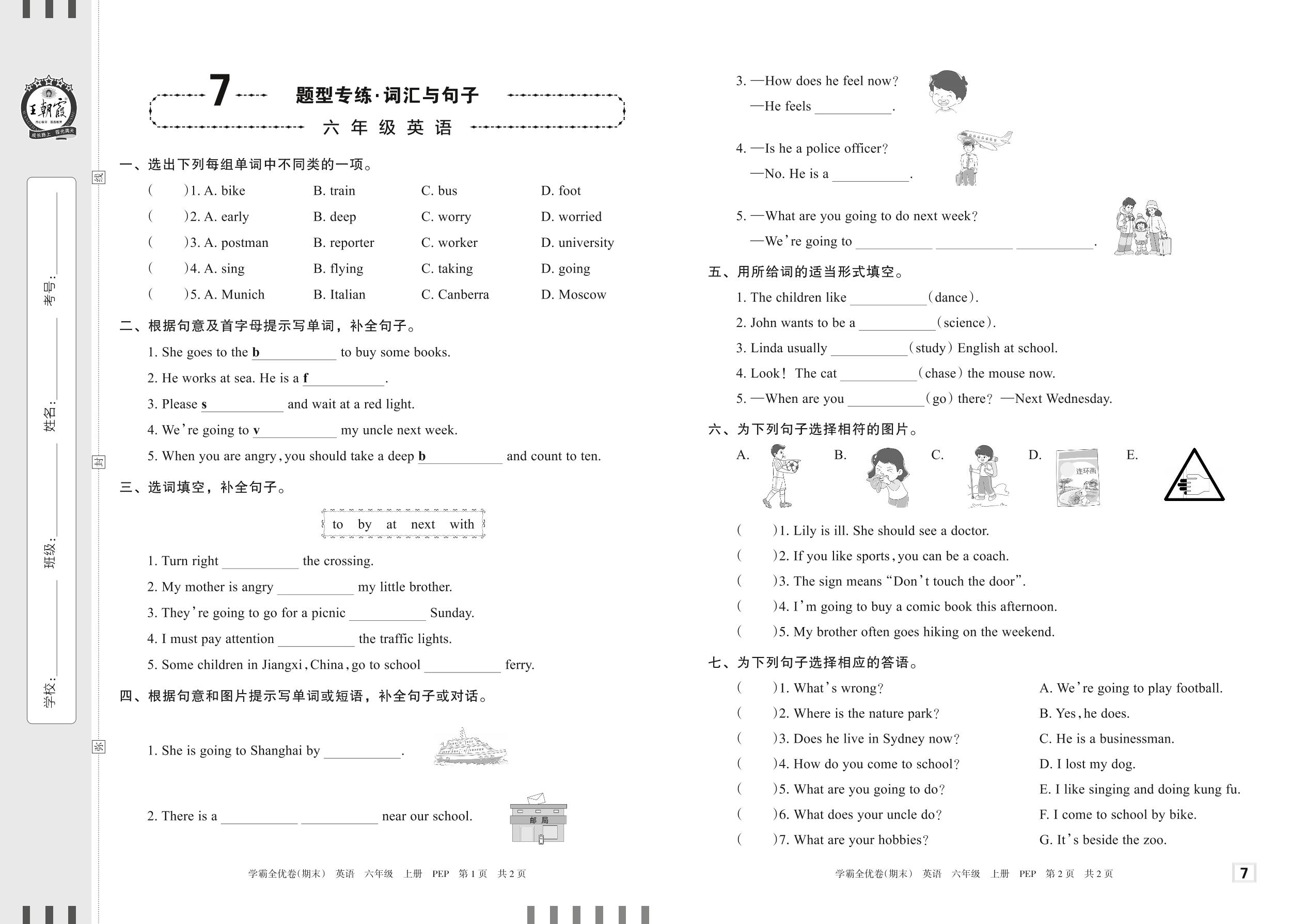 2022上册六年级英语人教PEP版 7 题型专练·词汇与句子