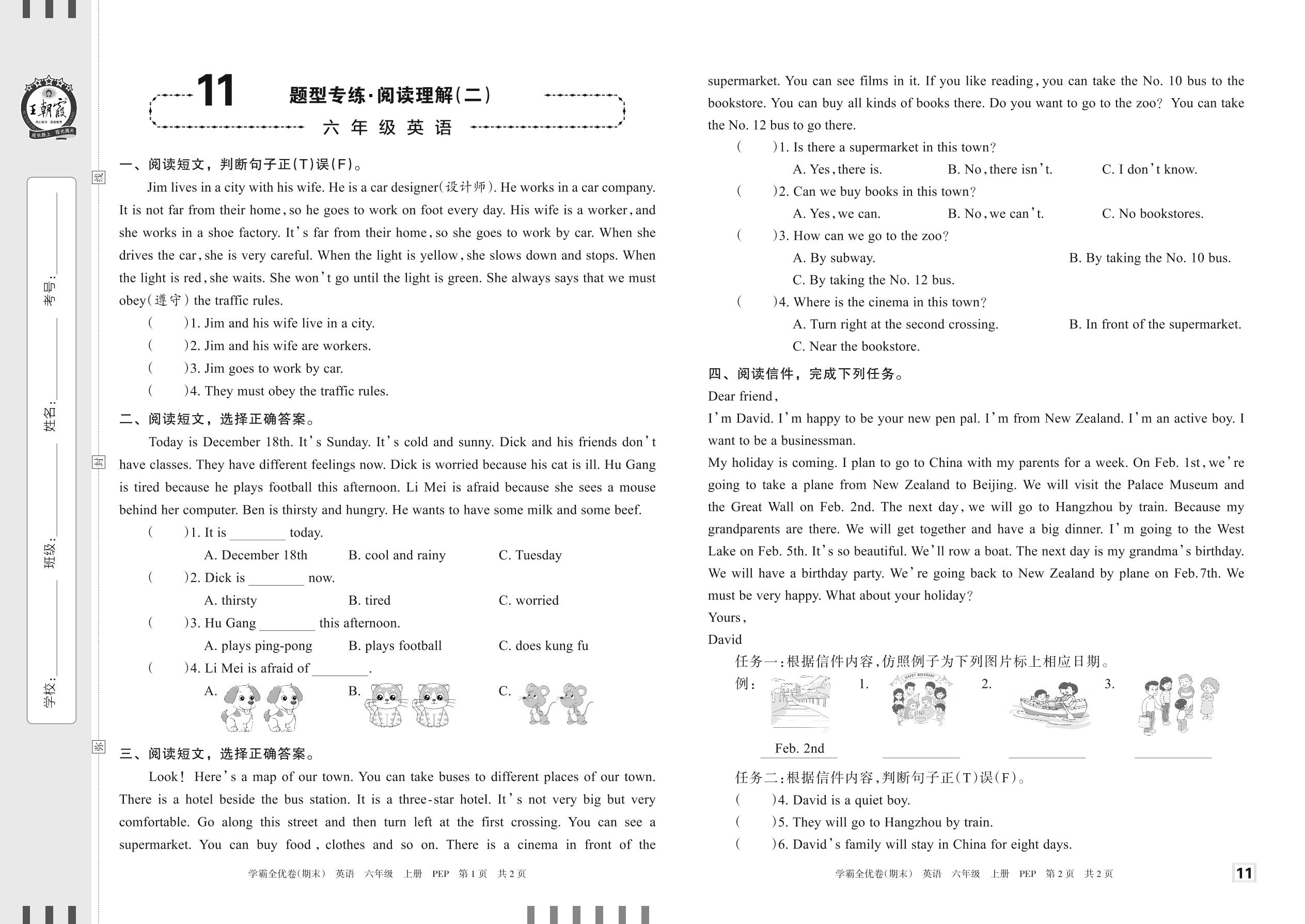 2022上册六年级英语人教PEP版 11 题型专练·阅读理解(二)