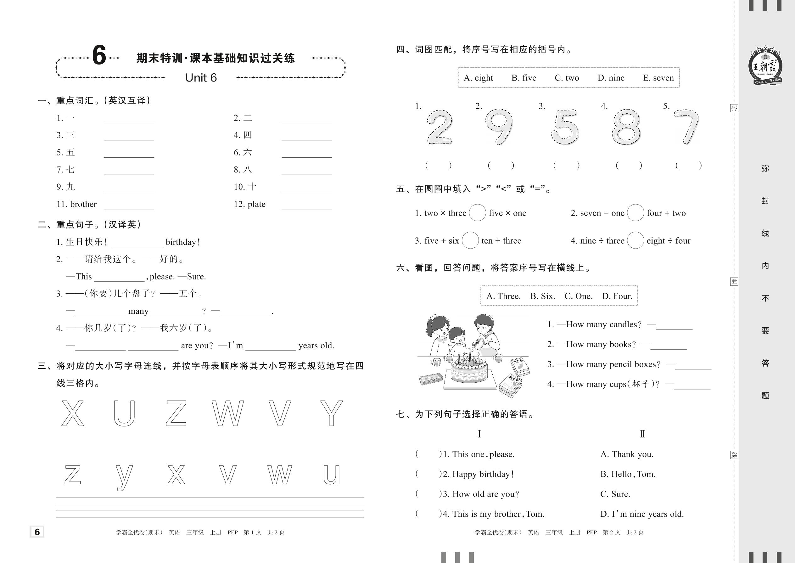2022上册三年级英语人教PEP版 6 期末特训·课本基础知识过关练——Unit 6