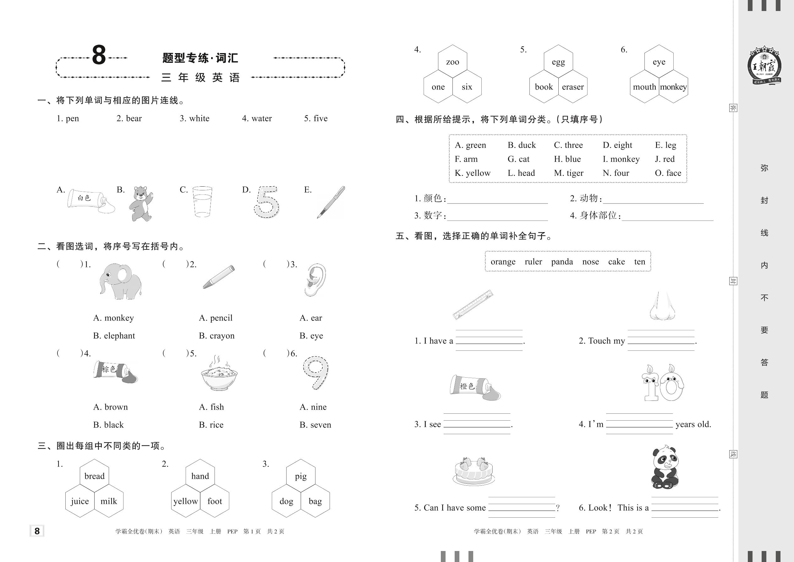 2022上册三年级英语人教PEP版 8 题型专练·词汇