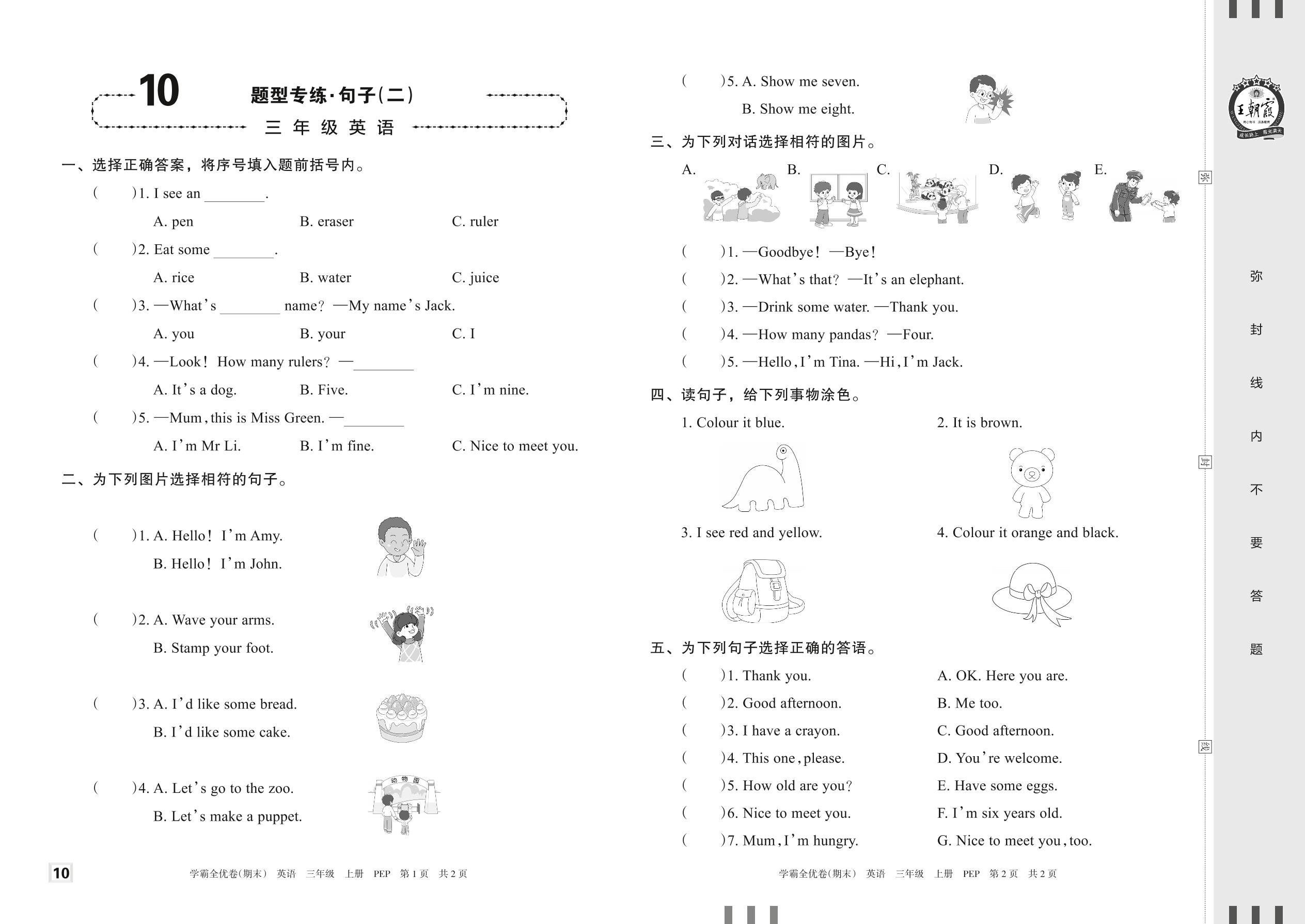 2022上册三年级英语人教PEP版 10 题型专练·句子(二)