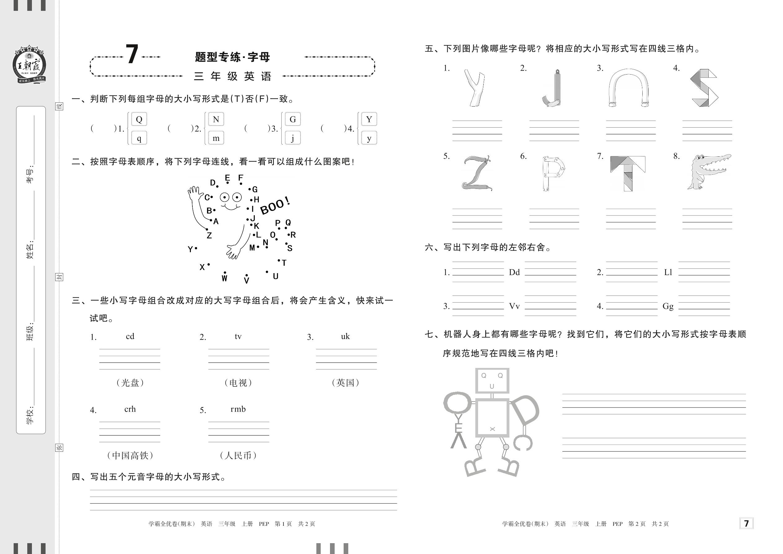 2022上册三年级英语人教PEP版 7 题型专练·字母